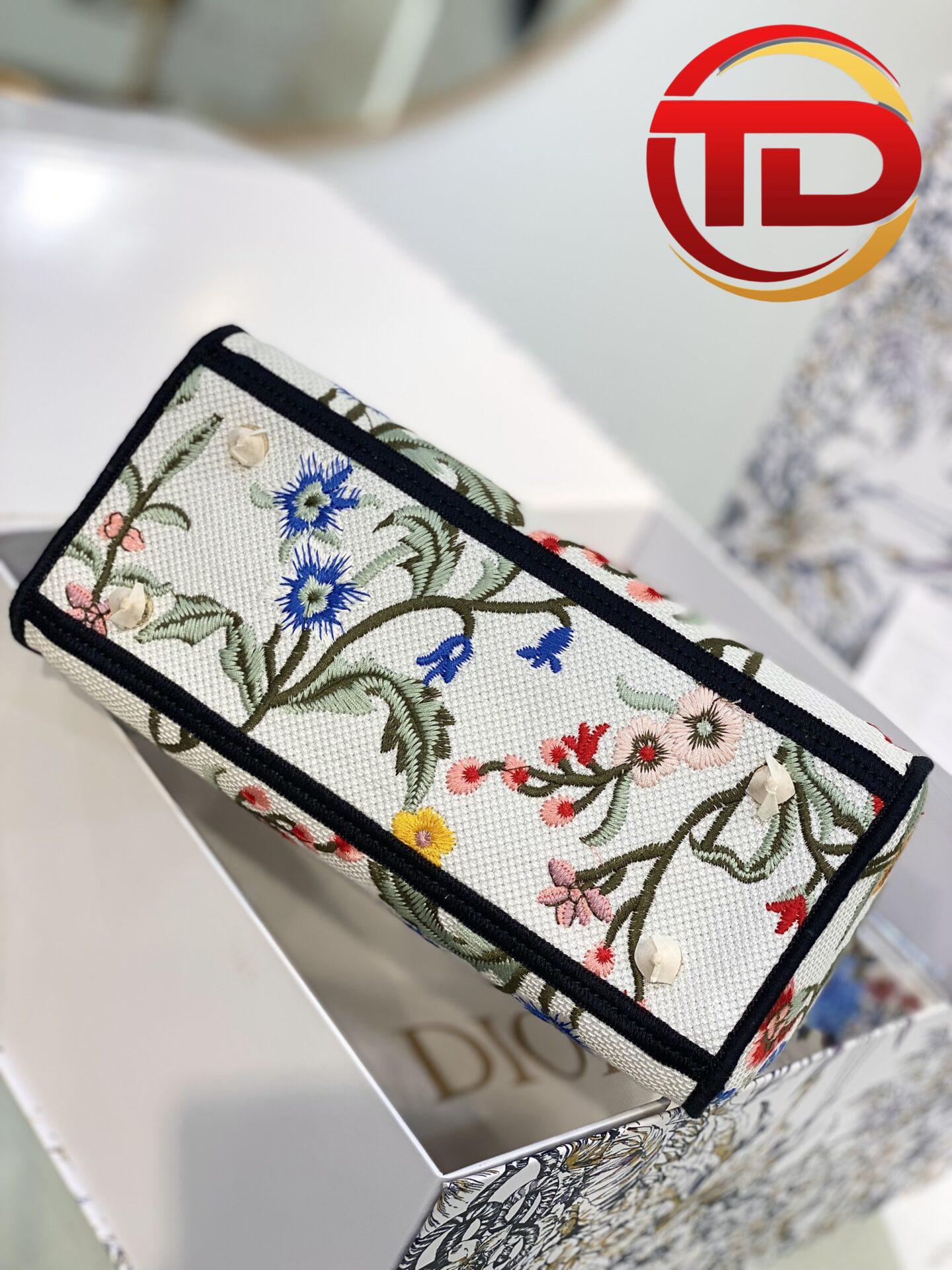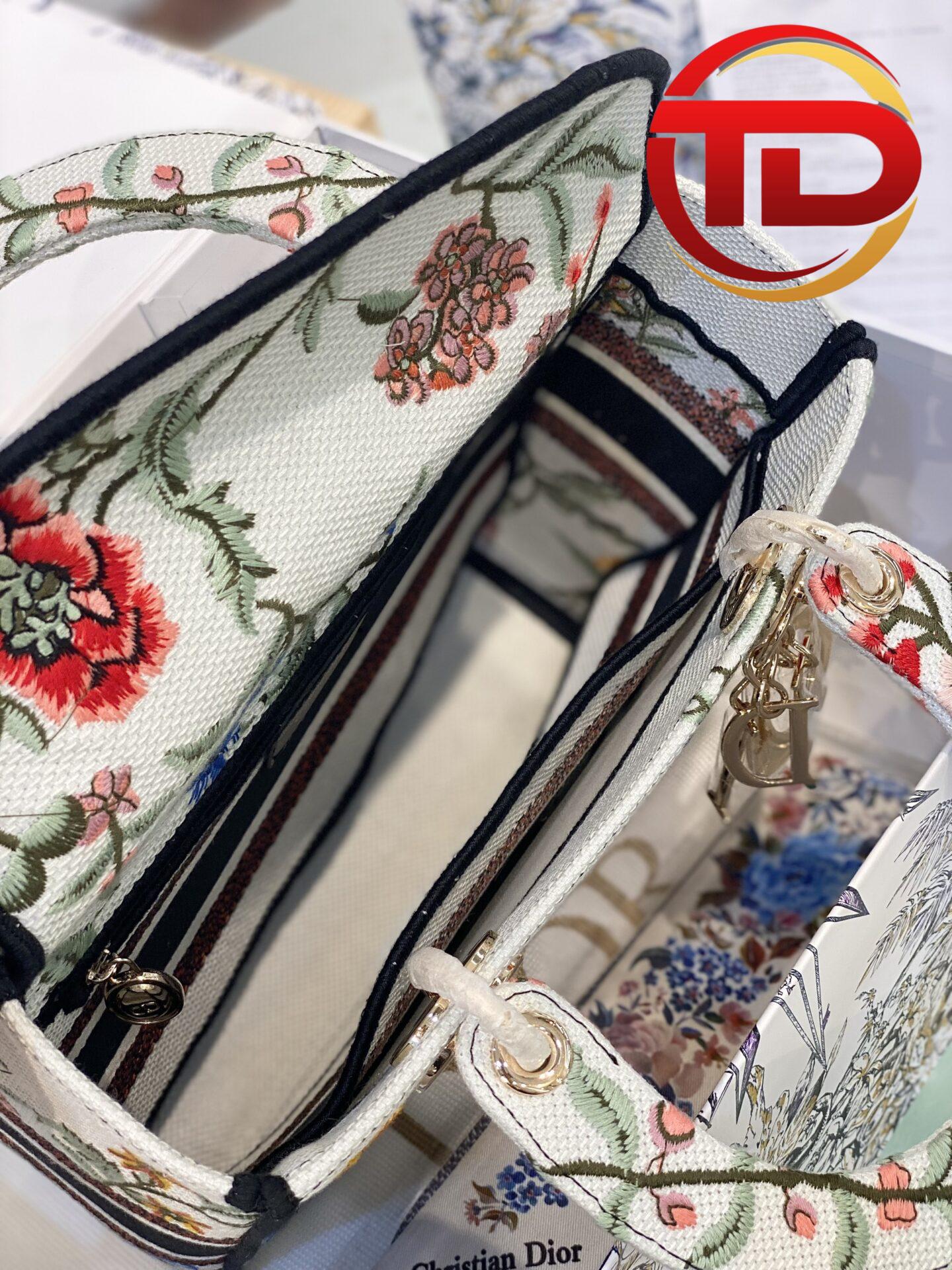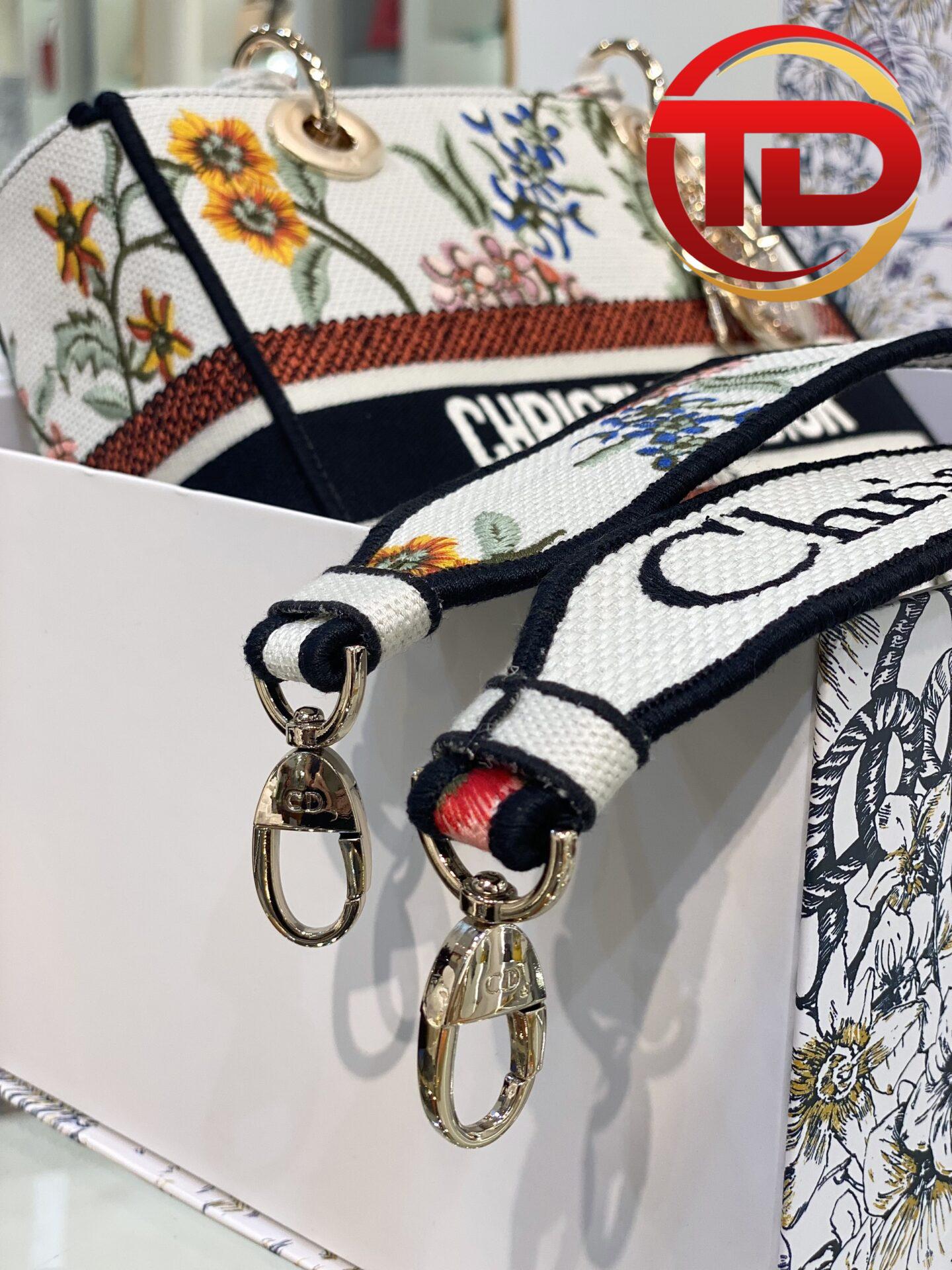 TÚI LADY DIOR MEDIUM SIZE D-LITE BAG WHITE MULTICOLOR PETITES FLEURS EMBROIDERY