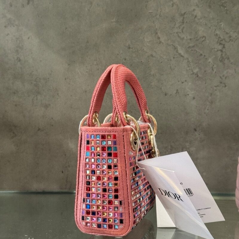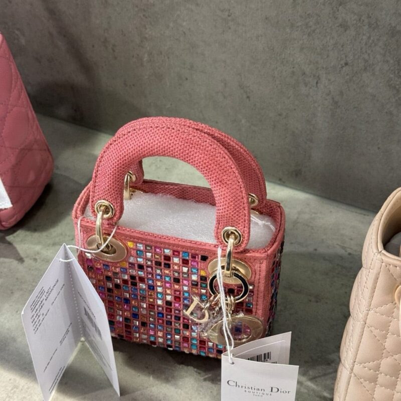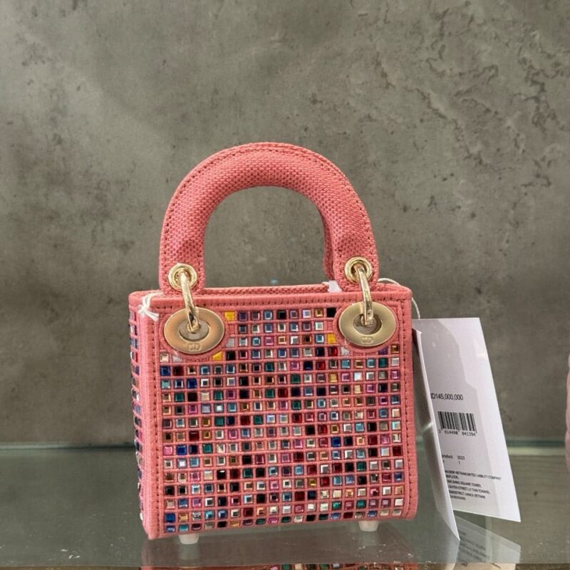 TÚI LADY DIOR MICRO ĐÍNH ĐÁ MÀU HỒNG SIÊU CẤP LIKE AUTH SIZE 12CM