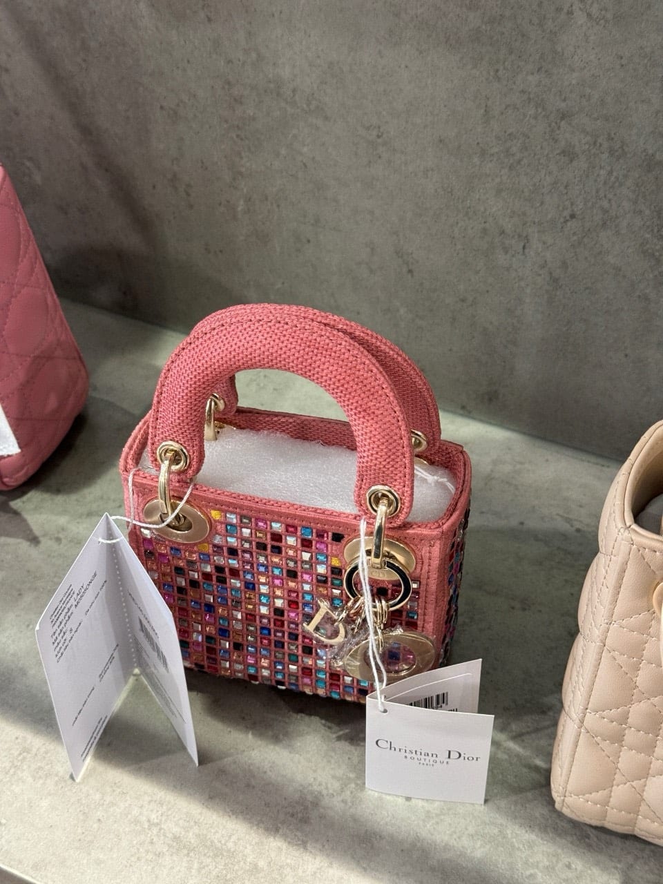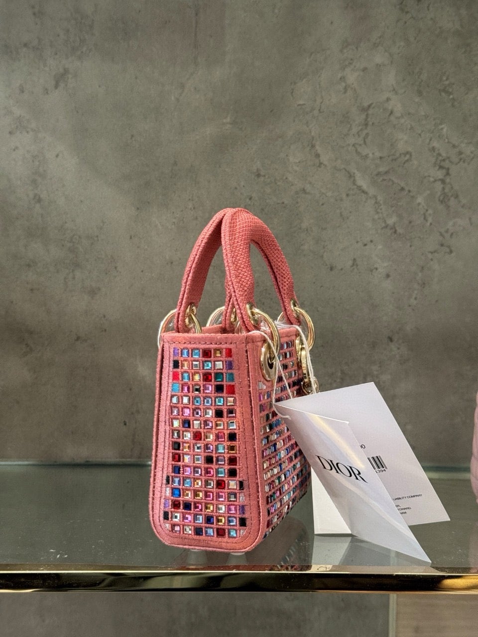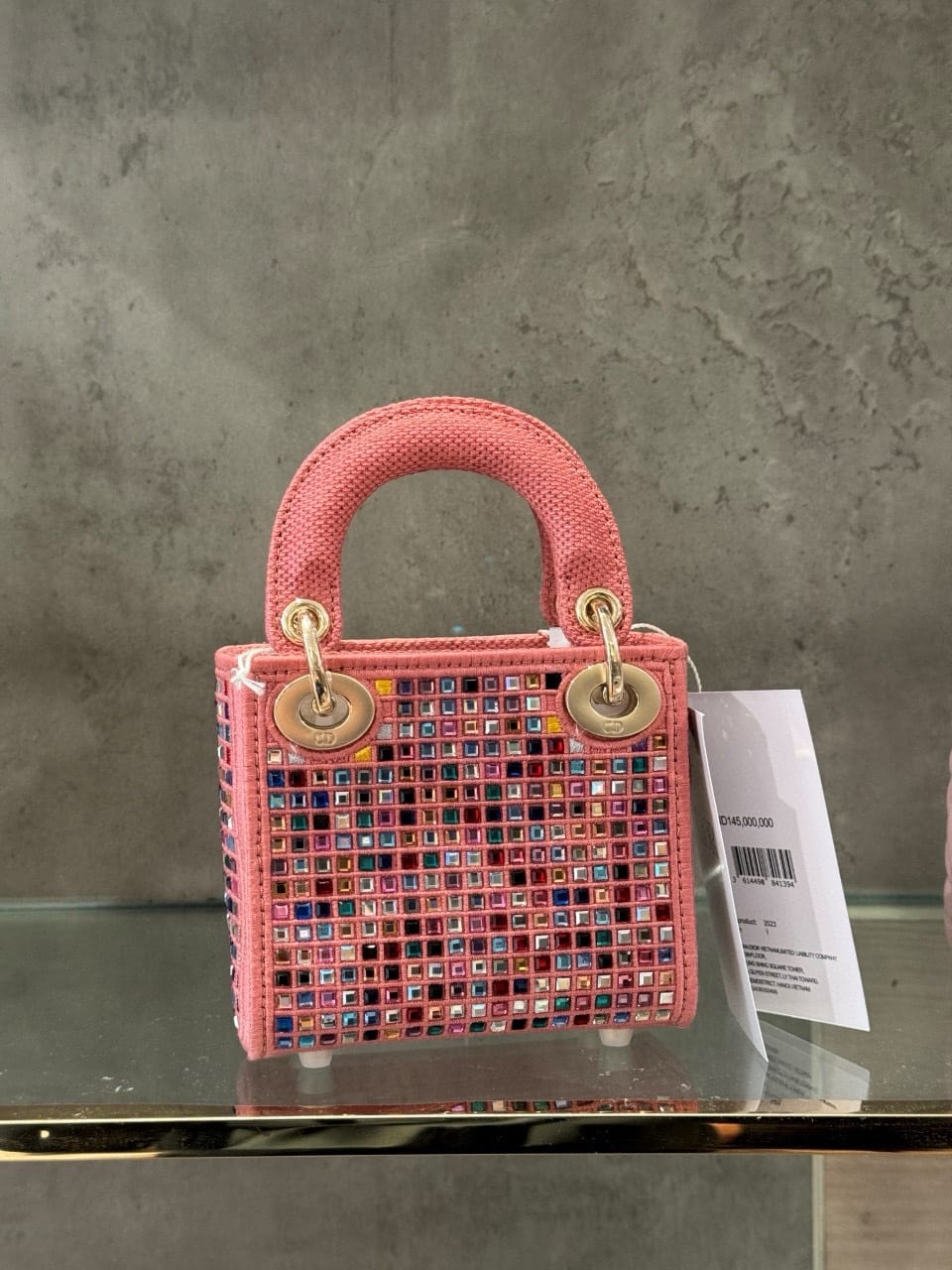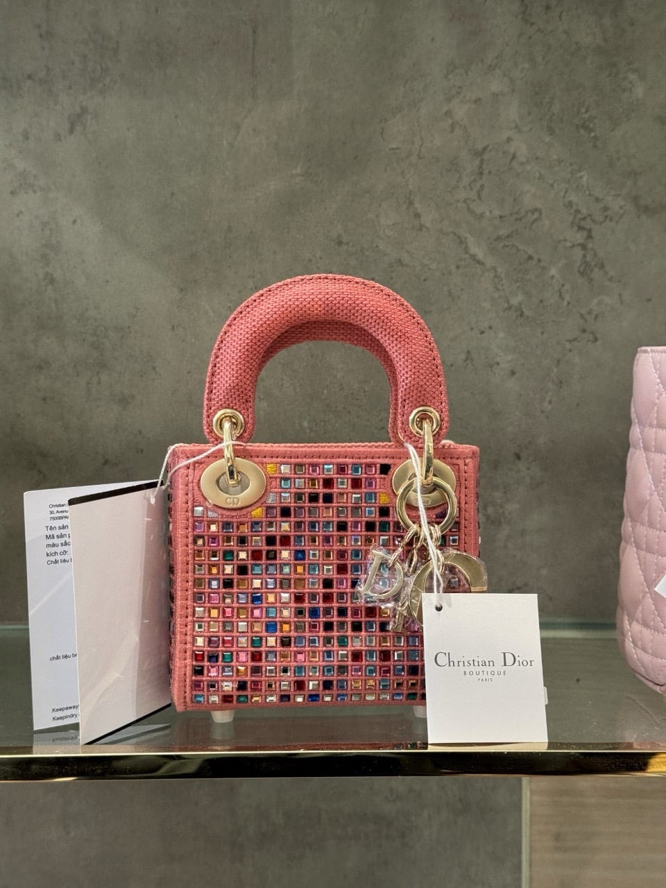 TÚI LADY DIOR MICRO ĐÍNH ĐÁ MÀU HỒNG SIÊU CẤP LIKE AUTH SIZE 12CM
