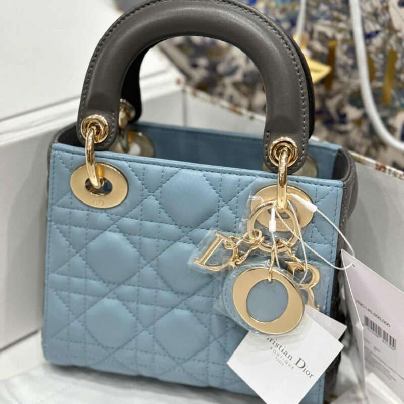 Chúng tôi trân trọng giới thiệu chiếc túi xách Lady Dior Mini với 2 tông màu xanh và xám, phiên bản Vip like auth sử dụng chất liệu da cừu cao cấp. Sản phẩm đầy đủ hộp như khi mua tại store.