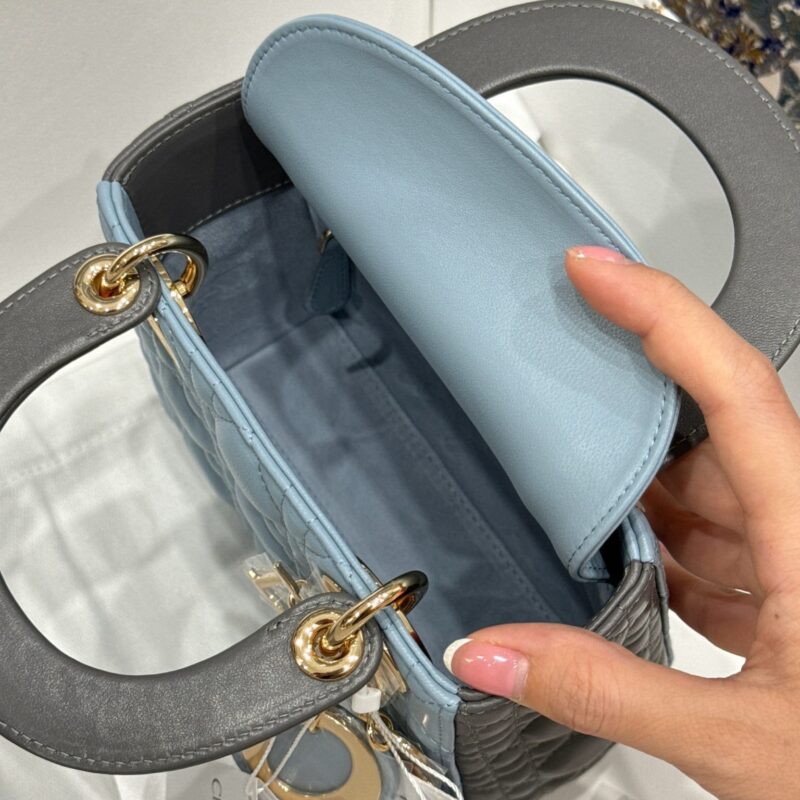 TÚI LADY DIOR MINI HAI MÀU XANH XÁM DA CỪU VIP LIKE AUTH SIZE 17CM