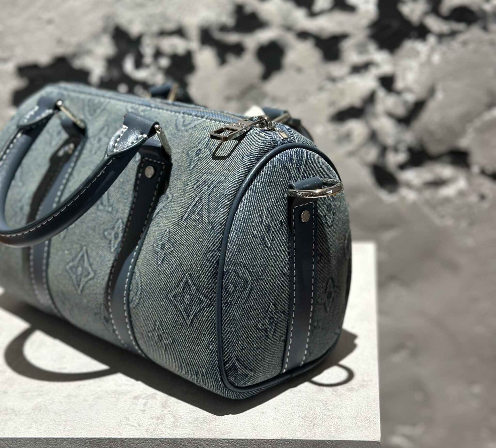 • Chất liệu Monogram Washed Denim Canvas