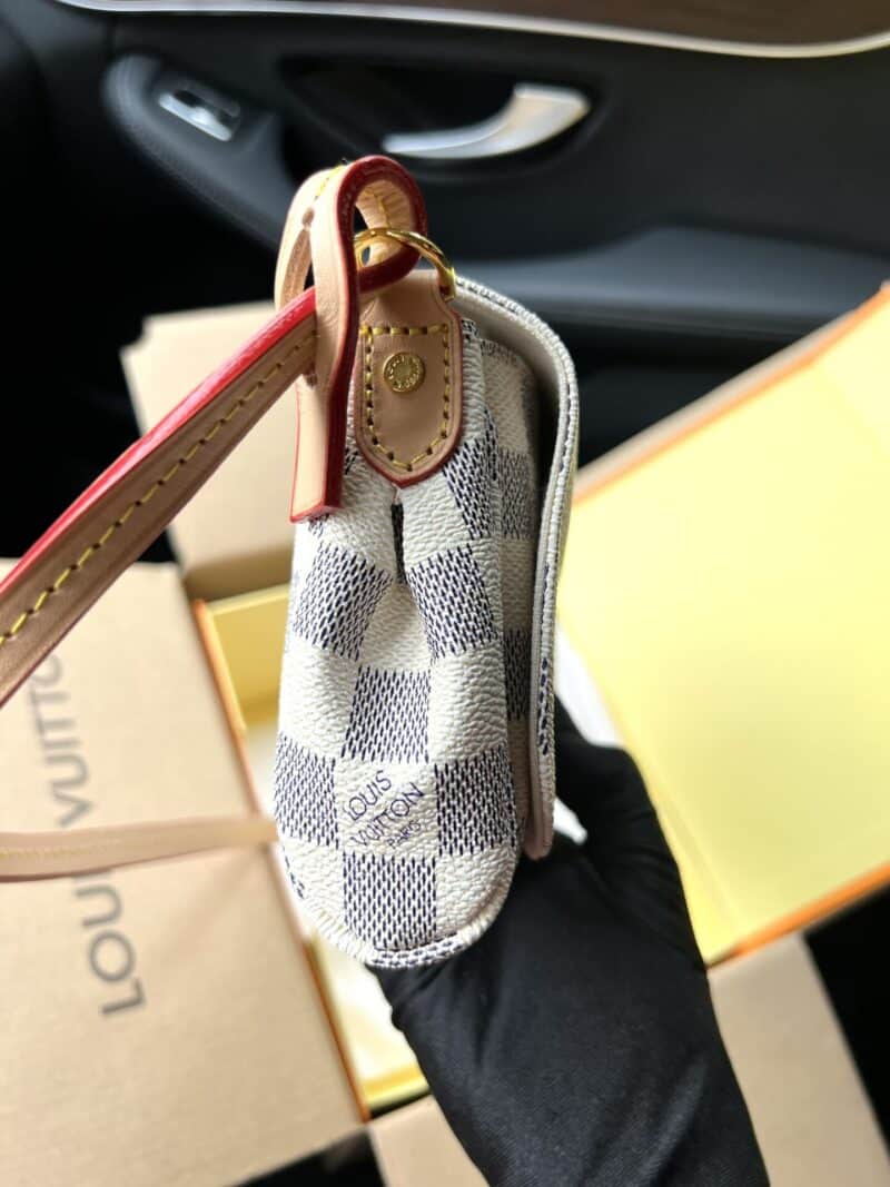 - Được làm từ chất liệu Damier Ebene – một trong những hoạ tiết đặc trưng của thương hiệu Louis Vuitton
