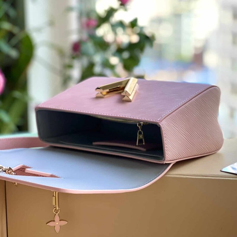 • Logo LV lồng ghép với khóa xoay vừa giúp chị em dễ dàng đóng – mở túi