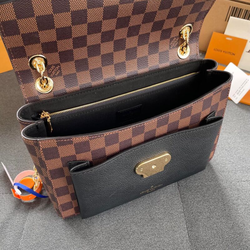 Nắp túi được làm từ họa tiết Damier Ebene, phần thân túi thiết kế từ da bê cao cấp mềm mịn được lót trong là lớp da lộn, phần da lộn dập nổi Logo. Túi gồm 2 ngăn và một ngăn nhỏ tiện dụng, kích thước túi 25 x 17 x 9,5 cm. Khóa túi sang trọng màu vàng ánh kim nổi bật, điêu khắc Logo LV huyền thoại tăng thêm phần đẳng cấp.