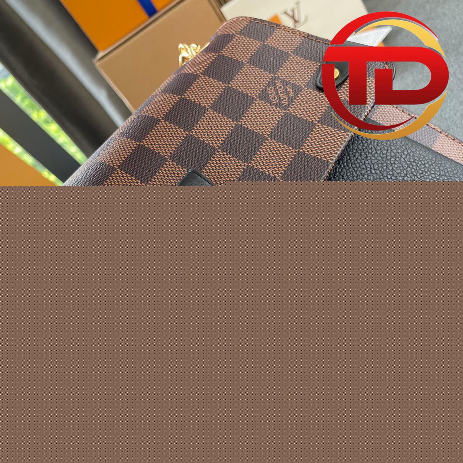 Nắp túi được làm từ họa tiết Damier Ebene, phần thân túi thiết kế từ da bê cao cấp mềm mịn được lót trong là lớp da lộn, phần da lộn dập nổi Logo. Túi gồm 2 ngăn và một ngăn nhỏ tiện dụng, kích thước túi 25 x 17 x 9,5 cm. Khóa túi sang trọng màu vàng ánh kim nổi bật, điêu khắc Logo LV huyền thoại tăng thêm phần đẳng cấp.
