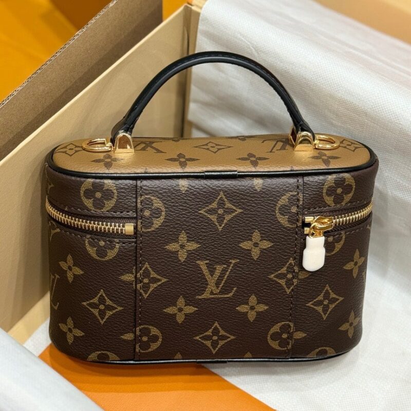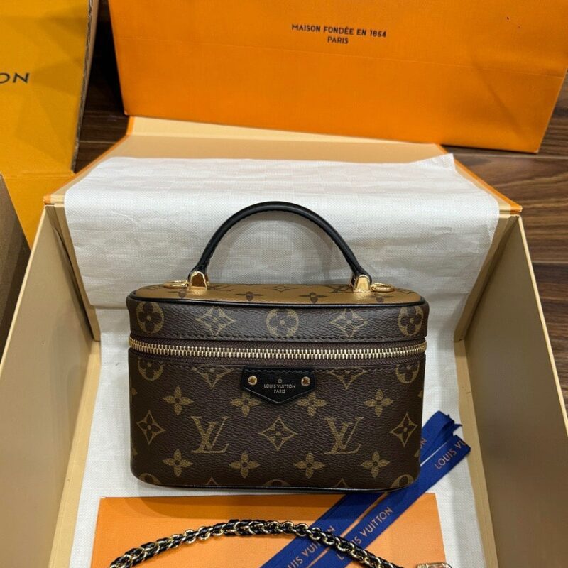 Chi tiết túi LV Vanity Chain Pouch Monogram Reverse màu nâu size 19cm phiên bản siêu cấp với chất lượng cao cấp nhất thị trường. Sản phẩm full box và có chip NFC check như auth.