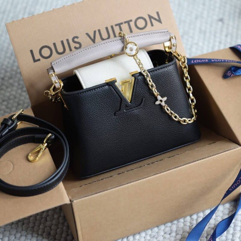 TÚI NỮ LV SAC CAPUCINES MINI DÂY XÍCH LOGO BẢN MỚI 2023 SIÊU CẤP