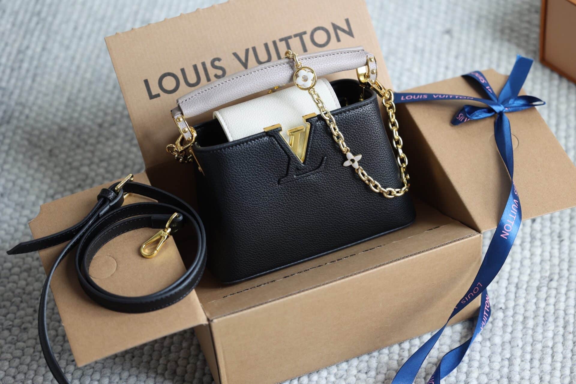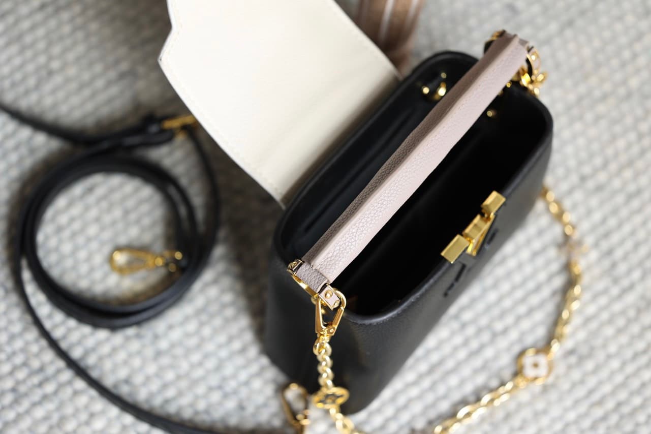 TÚI NỮ LV SAC CAPUCINES MINI DÂY XÍCH LOGO BẢN MỚI 2023 SIÊU CẤP