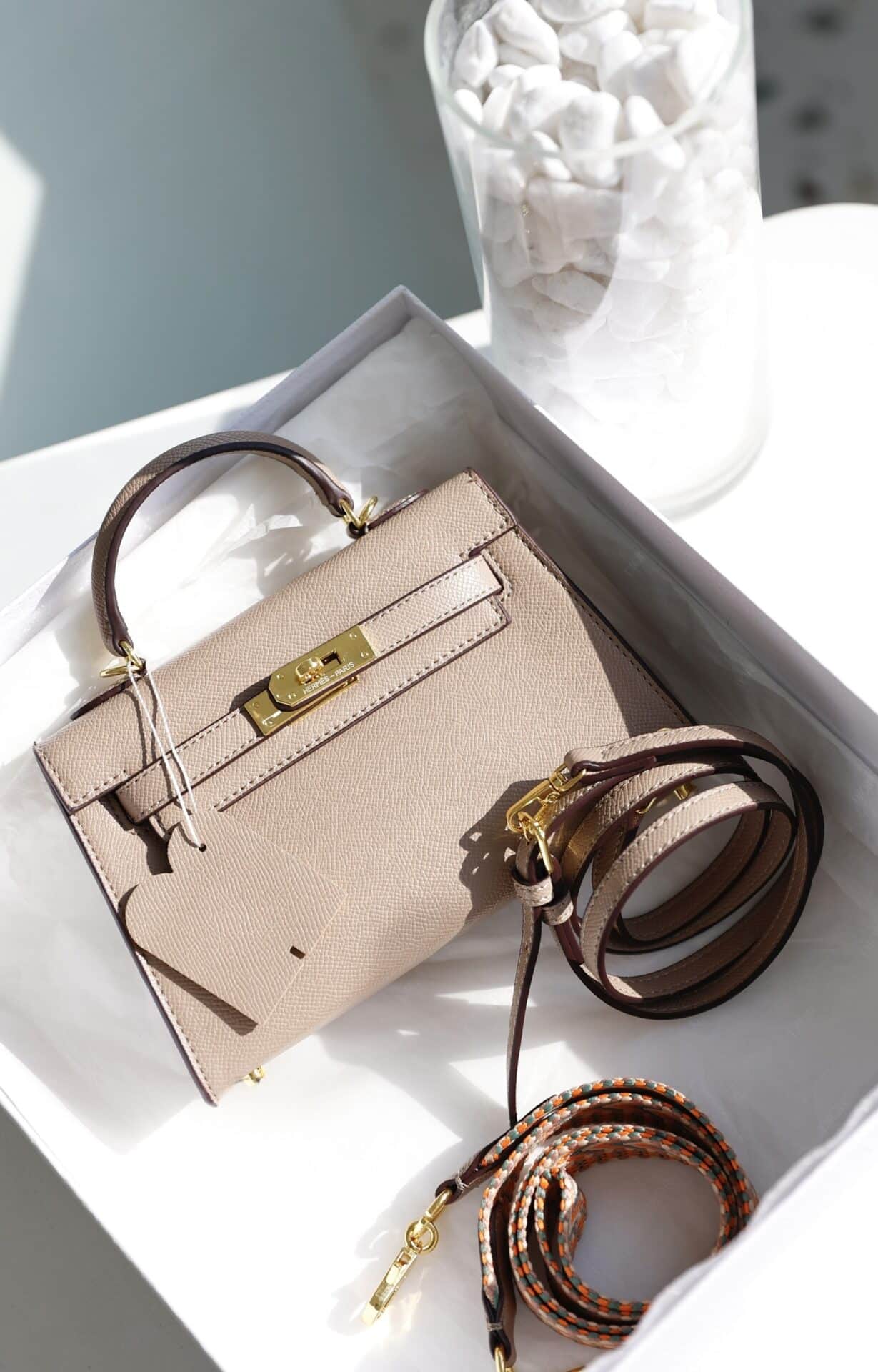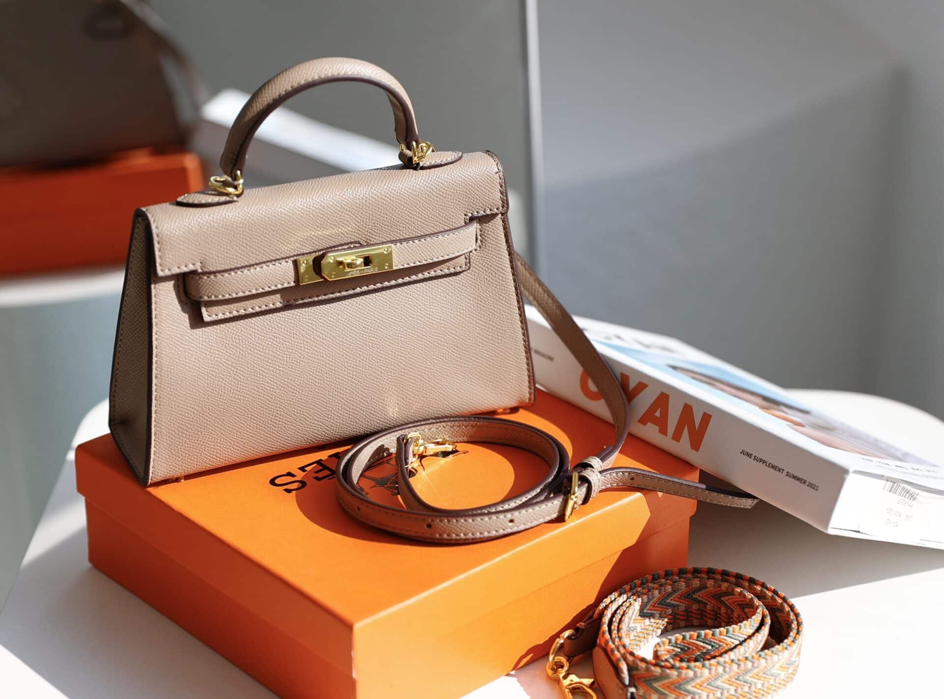 TÚI NỮ SIÊU CẤP HM HERMES KELLY MINI K20 ESPOM KHÓA VÀNG MÀU HỒNG