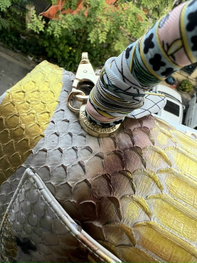 - Túi có quai xách tay cứng kèm dây da pha xích đeo chéo
