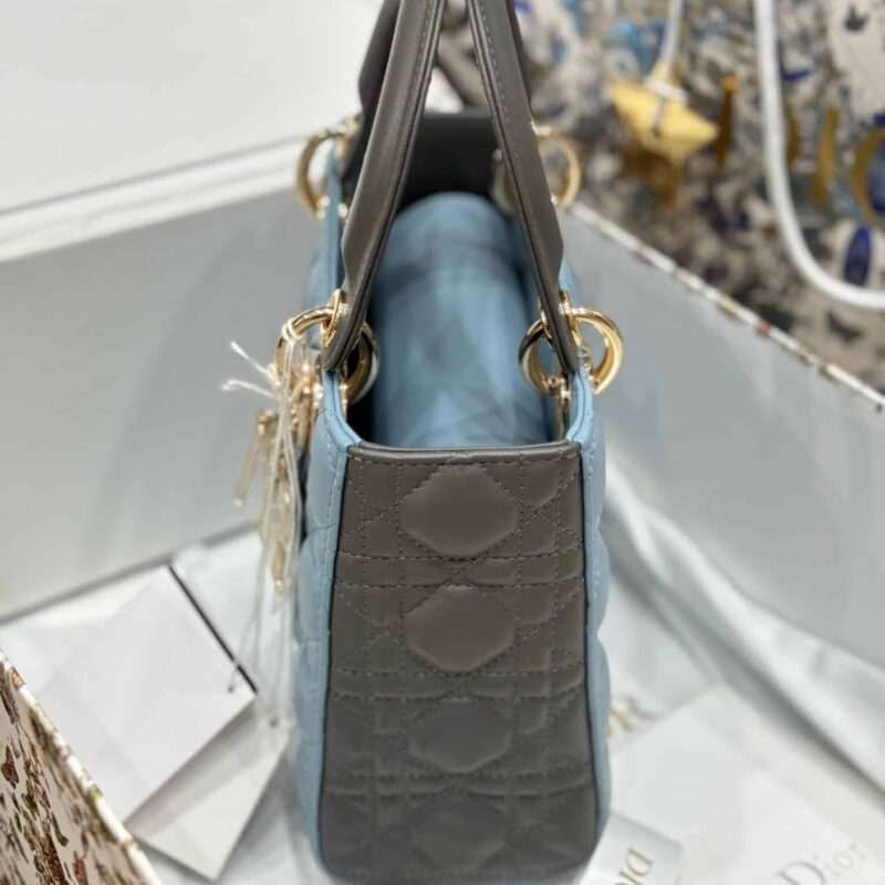 Chúng tôi trân trọng giới thiệu chiếc túi xách Small Lady Dior phối 2 màu xanh và xám, phiên bản Vip like auth sử dụng chất liệu da cừu cao cấp. Sản phẩm đầy đủ hộp như khi mua tại store.