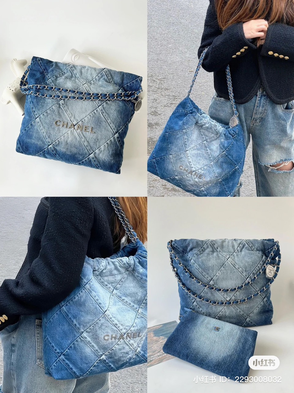TÚI XÁCH CHANEL 22 HANDBAG DENIM TAG BẠC SIÊU CẤP