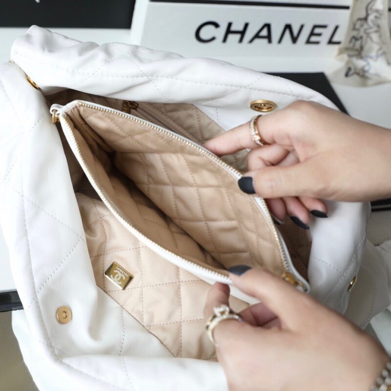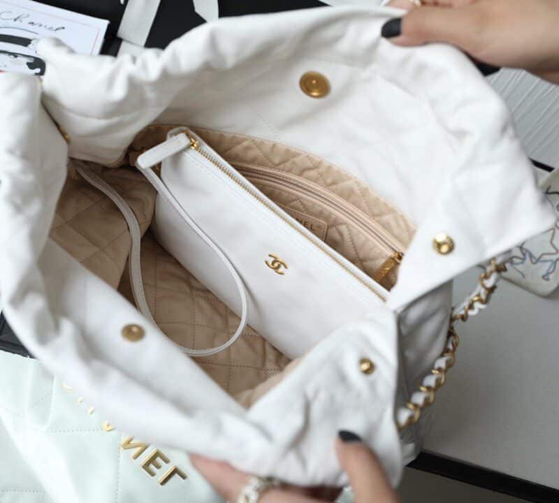 Mẫu túi Chanel đang tạo nên “cơn sốt” trên thị trường túi hiệu chắc chắn phải kể đến TÚI XÁCH CHANEL 22 SMALL HANDBAG DA TRẮNG TAG VÀNG FULLBOX. Sở hữu kiểu dáng vừa trẻ trung năng động vừa sang trọng đẳng cấp kết hợp với các chi tiết trang trí giúp cho sản phẩm chiếm trọn sự yêu mến của khách hàng ngay từ những ngày đầu mới lên kệ.