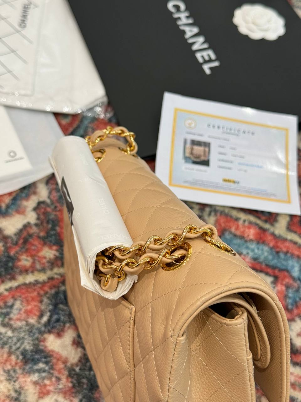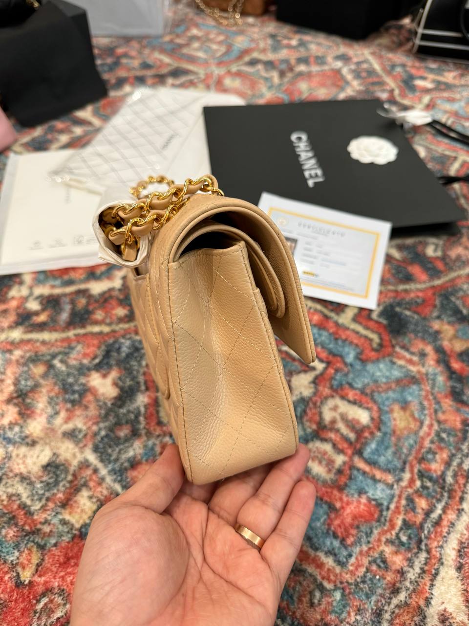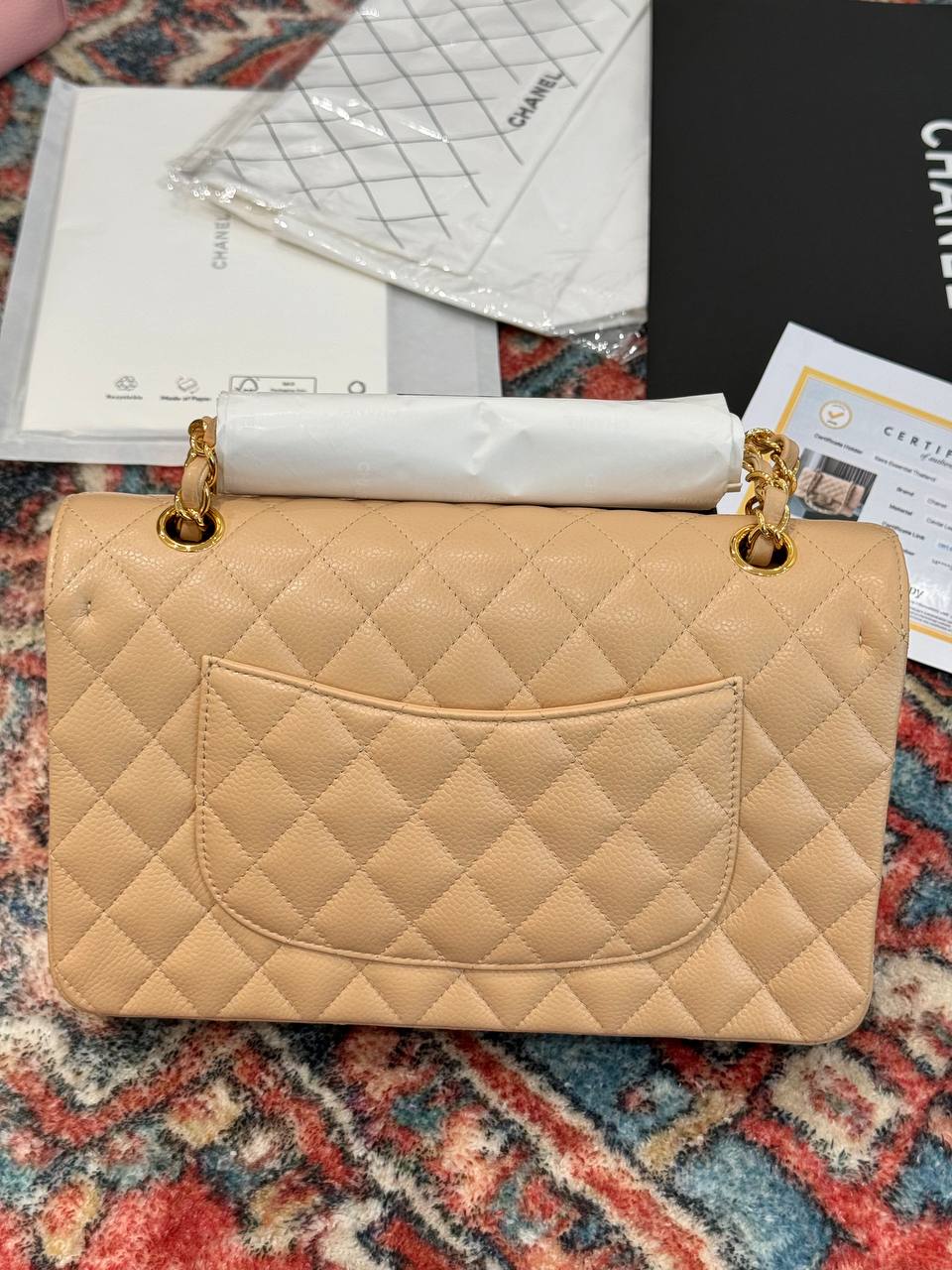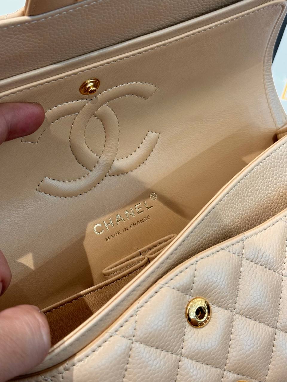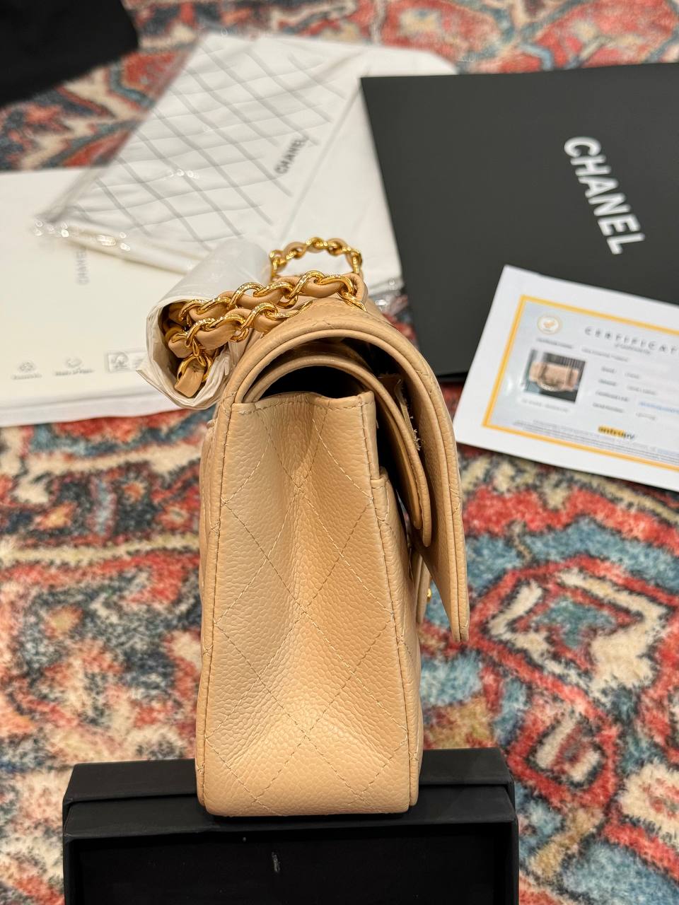 TÚI XÁCH CHANEL CLASSIC DOUBLE FLAP DA CAVIAR MÀU BE LIKE AUTH VVIP SIZE 25