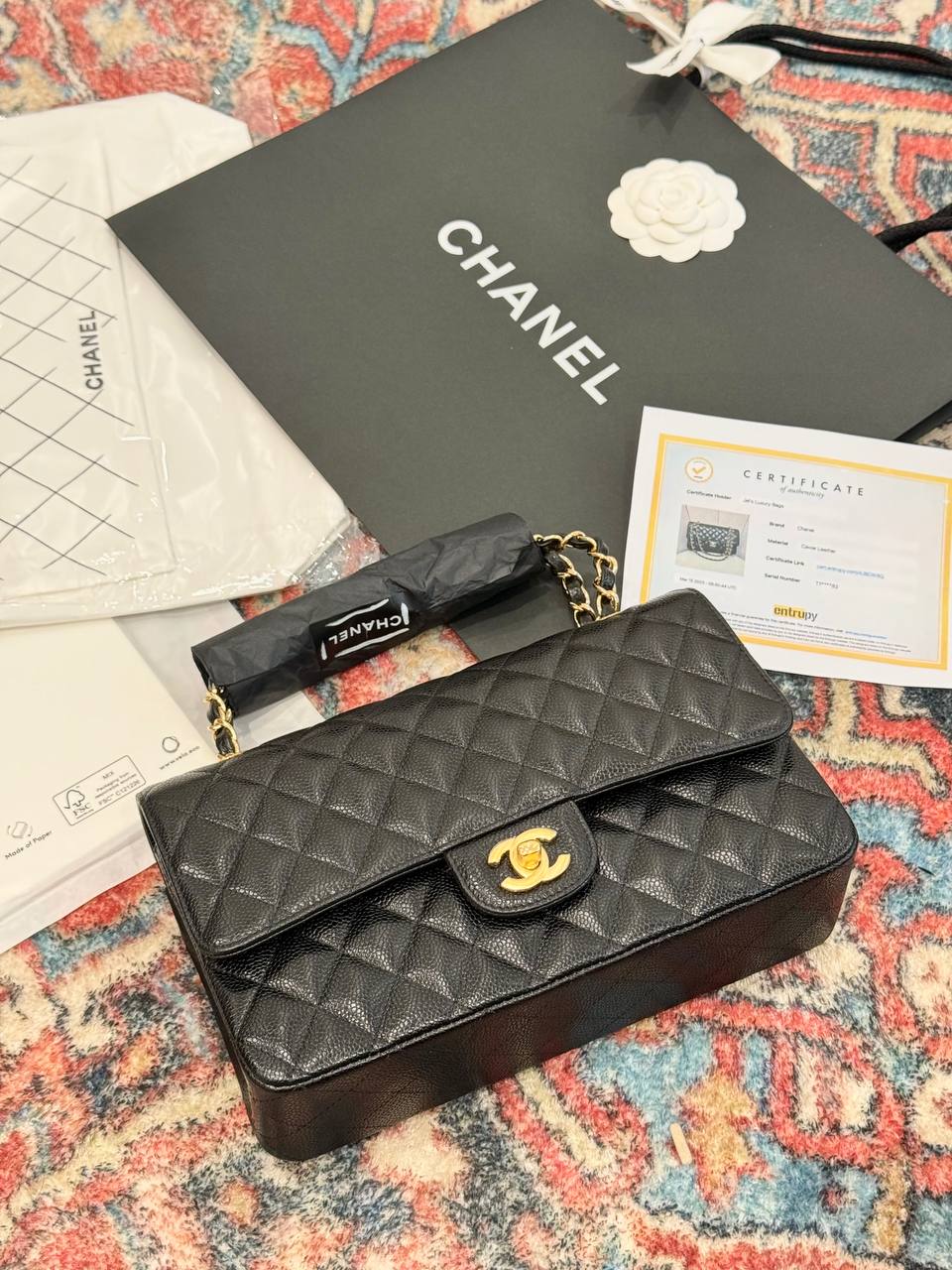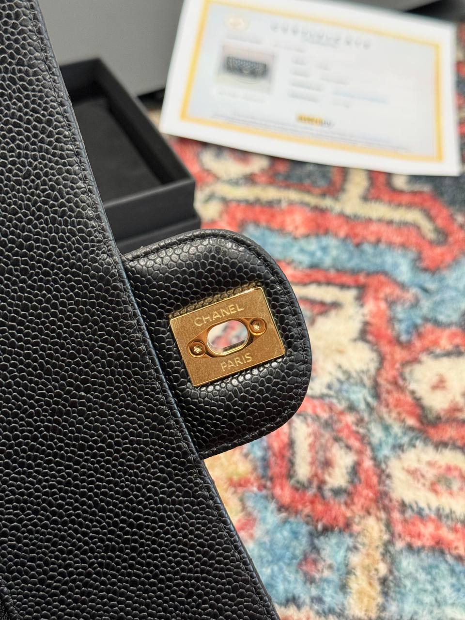 TÚI XÁCH CHANEL CLASSIC DOUBLE FLAP DA CAVIAR MÀU ĐEN VVIP LIKE AUTH SIZE 25
