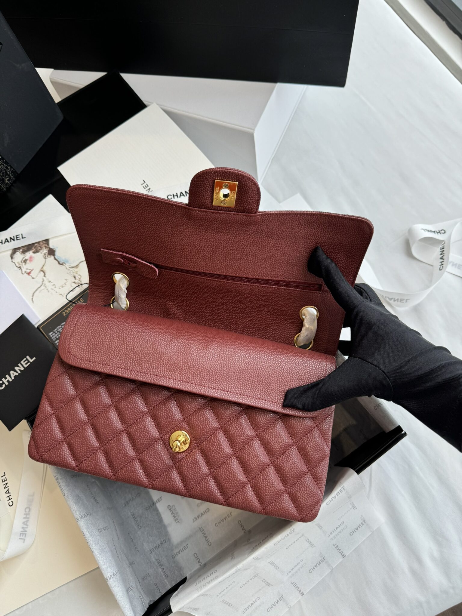 - Phần túi dưới nắp cũng là đặc trưng riêng của dòng Chanel Classic