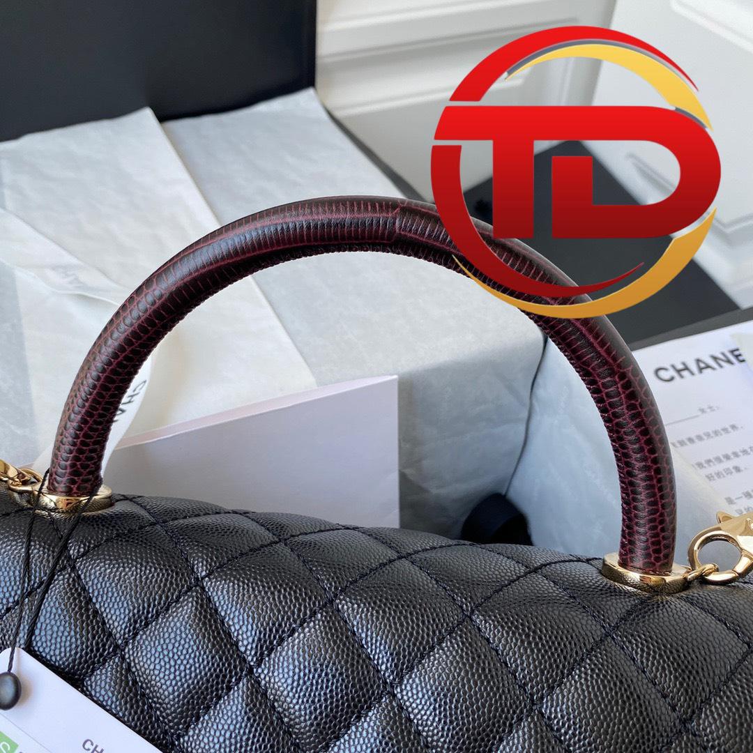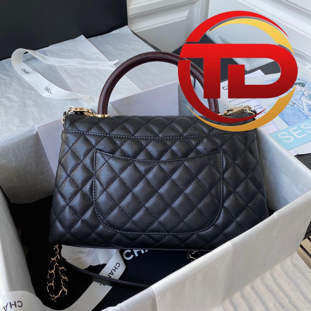 TÚI XÁCH CHANEL COCO FLAP BAG BLACK GRAINED WITH TOP HANDLE SIÊU CẤP VIP ra mắt lần đầu trong bộ sưu tập Thu Đông 2015 nhưng tính cho đến thời điểm hiện tại, mẫu túi này vẫn chưa có dấu hiệu hạ nhiệt và vẫn khiến nhiều chị em say đắm mỗi khi ngắm nhìn.