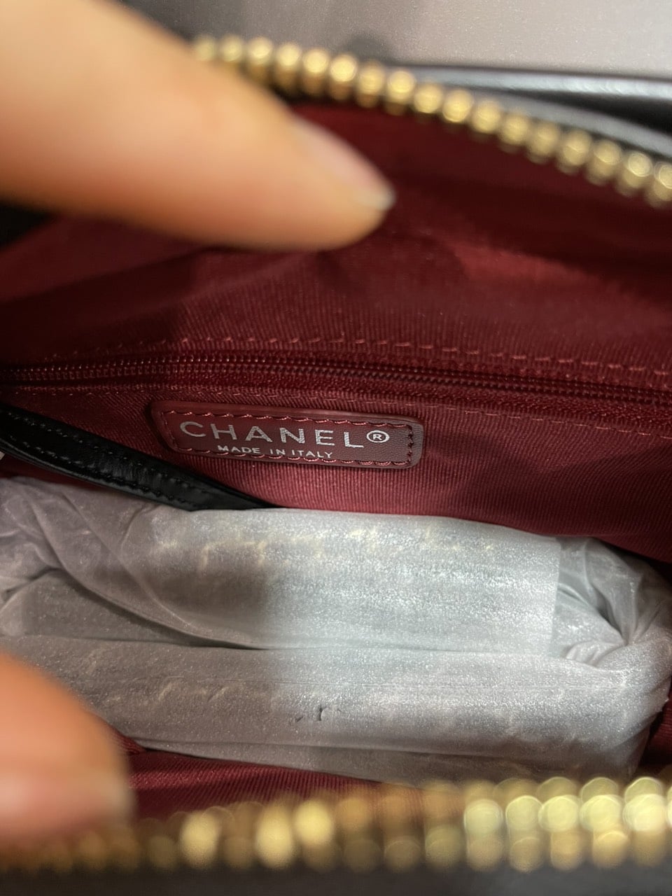 • Túi có khóa kéo chắc chắn đính logo CHANEL