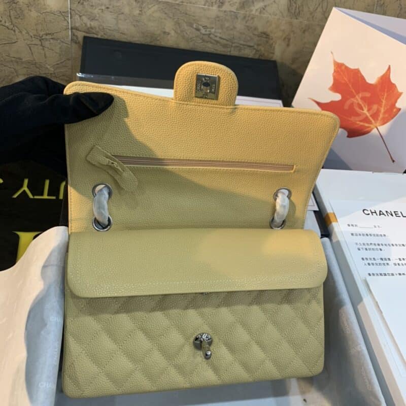 Túi chanel classic có một dây đeo vai thả xuống 23 cm (9 inch) và dây đeo vai bỏ túi gấp lại một nửa. Với dây xích ngắn hơn, túi có thể được đặt thoải mái trên thắt lưng và có thể sử dụng dây đeo đơn khi không sử dụng dây đeo vai đôi. Nếu bạn không phải là người dùng ví dài , Chanel Medium Flap có thể đựng hầu hết các vật dụng cần thiết. Những người sử dụng túi nắp trung bình của Chanel thích kích thước này vì nó có thể dễ dàng và thuận tiện chuyển từ túi đi làm sang túi “hẹn hò”.