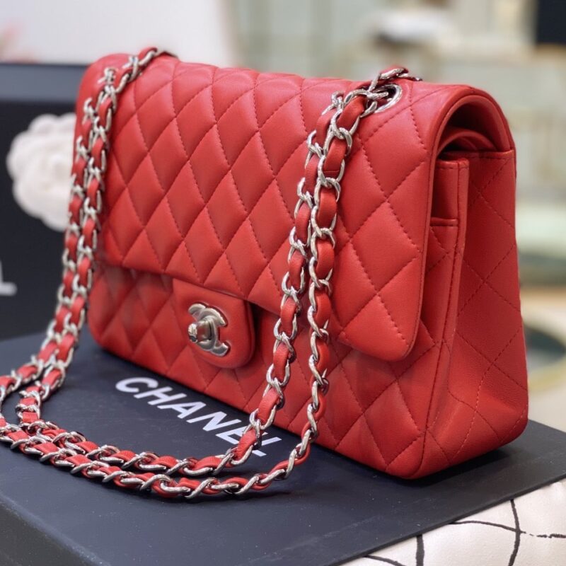 TÚI XÁCH CHANEL MEDIUM CLASSIC DOUBLE FLAP CALFSKIN BAG LIKE AUTH MÀU ĐỎ