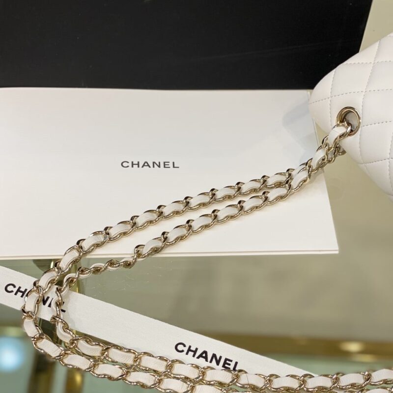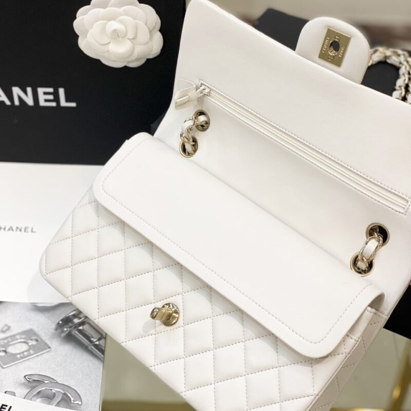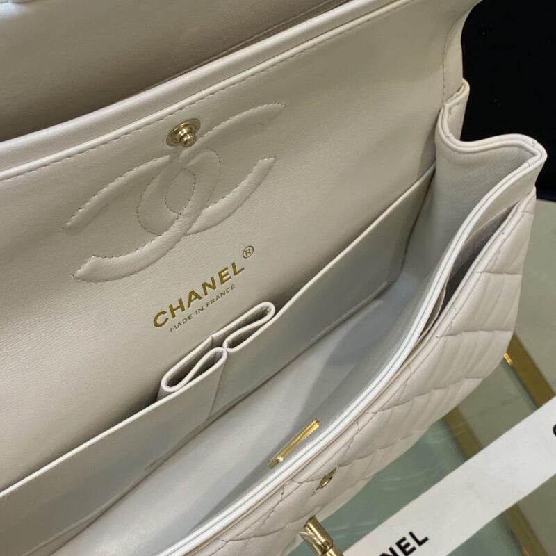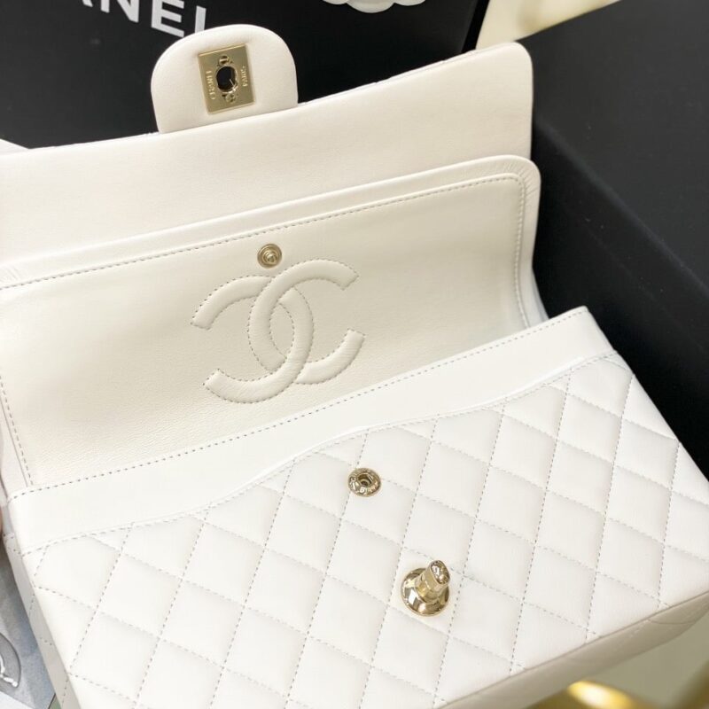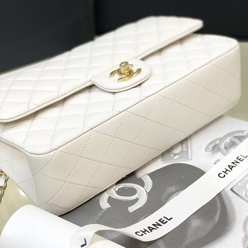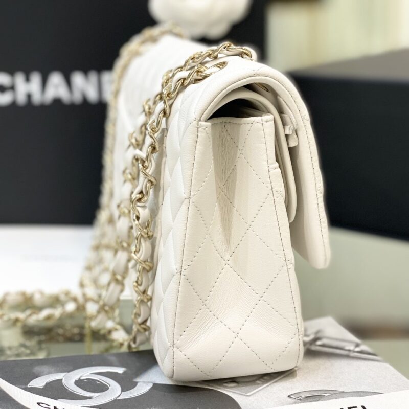TÚI XÁCH CHANEL MEDIUM CLASSIC DOUBLE FLAP CALFSKIN BAG LIKE AUTH MÀU TRẮNG