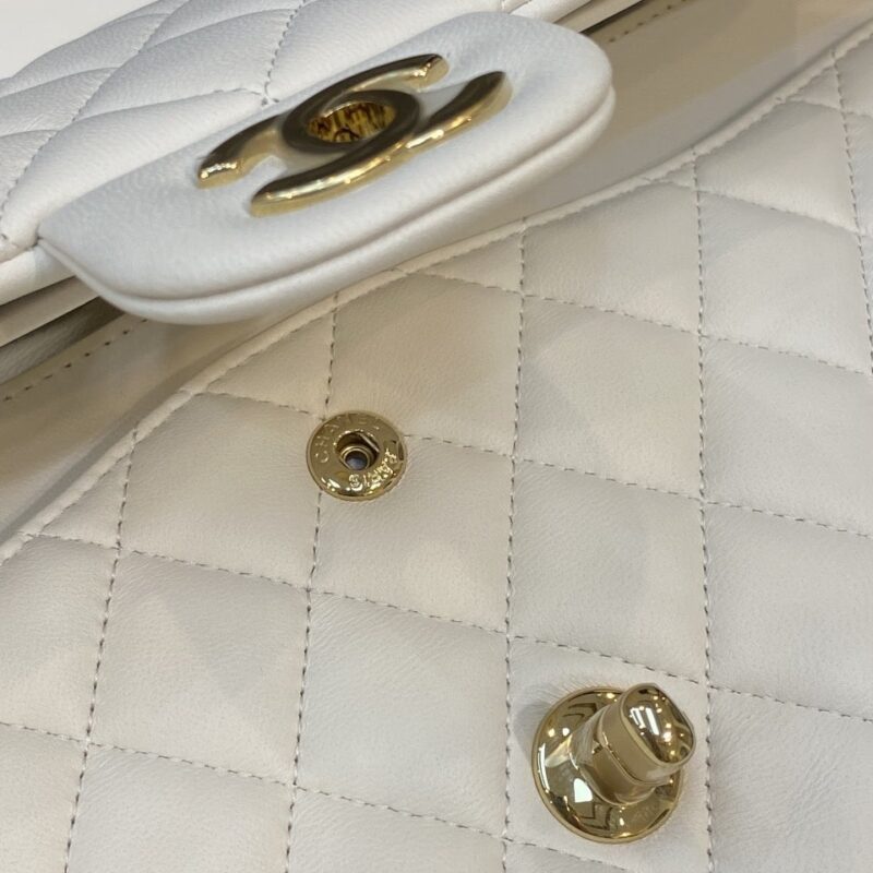 - Logo Chanel bọc vàng sáng tạo điểm nhấn chính giữa túi