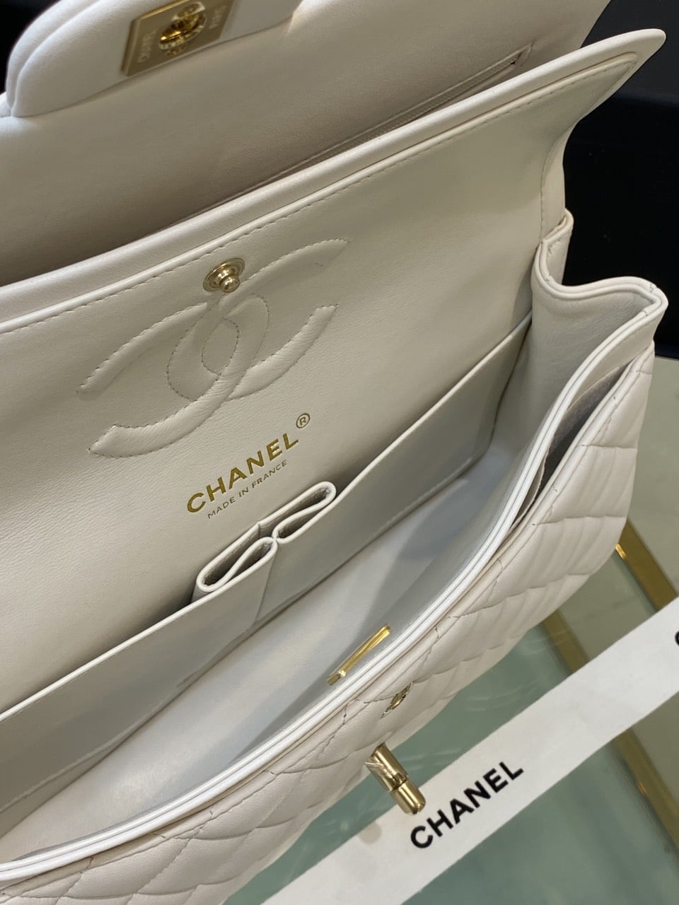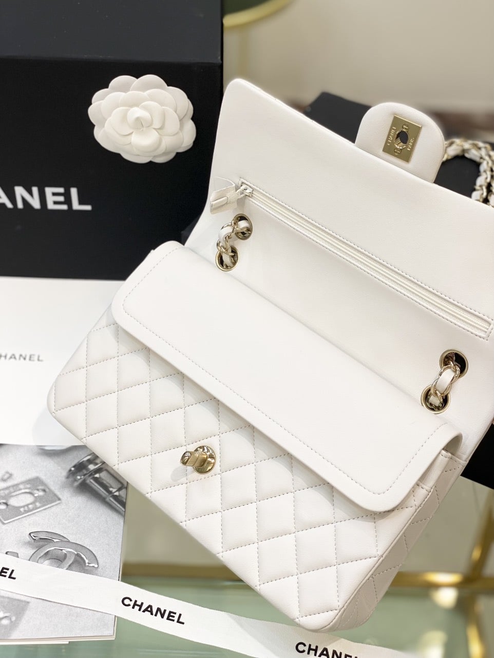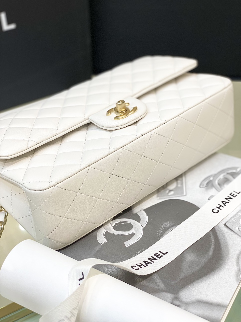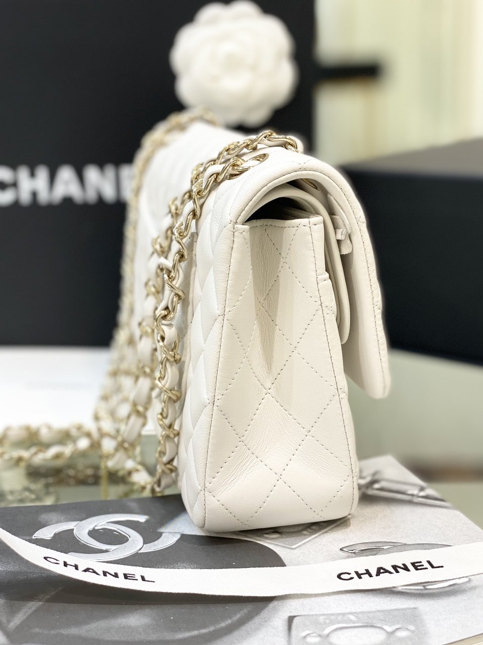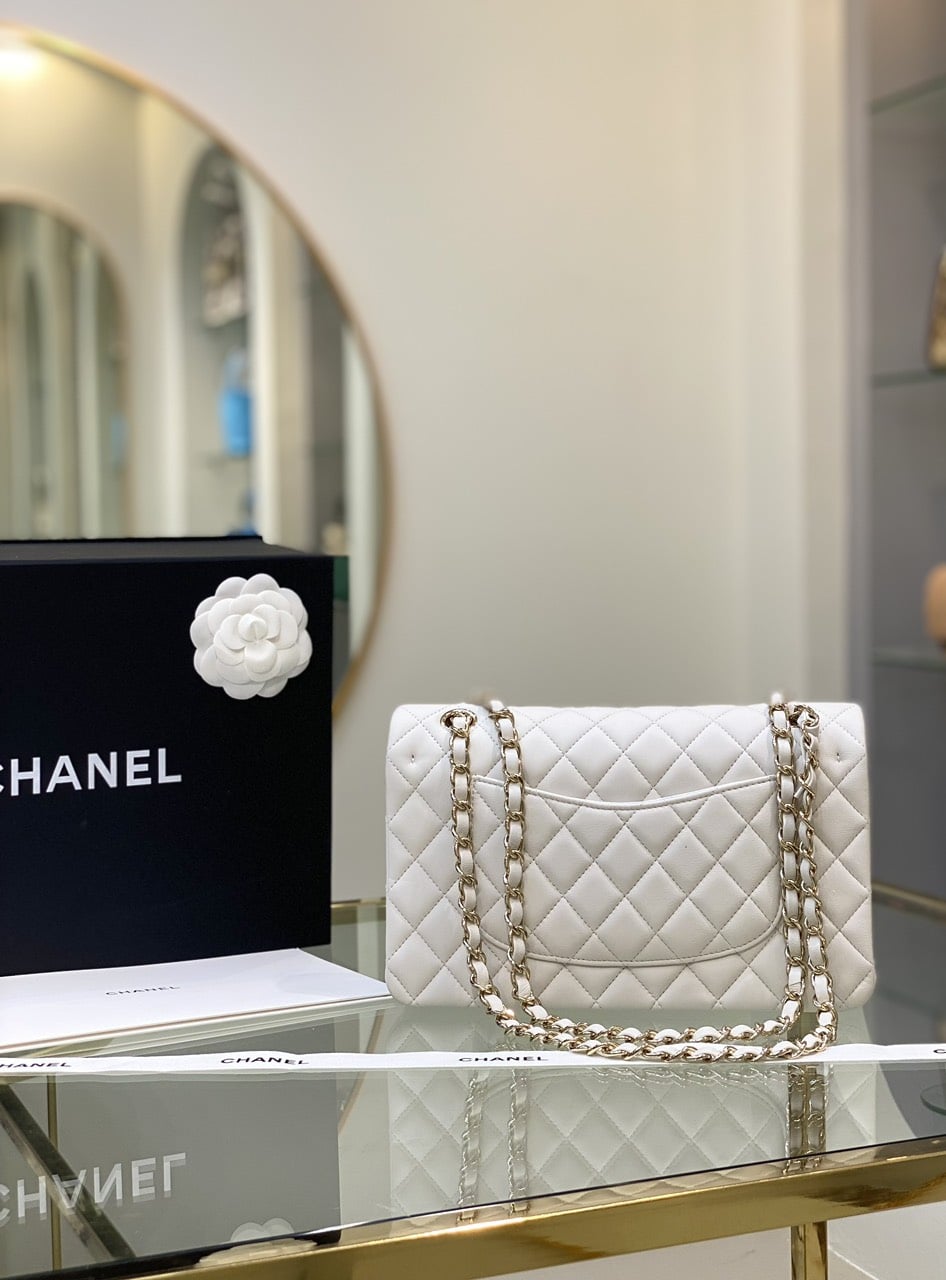 TÚI XÁCH CHANEL MEDIUM CLASSIC DOUBLE FLAP CALFSKIN BAG LIKE AUTH MÀU TRẮNG