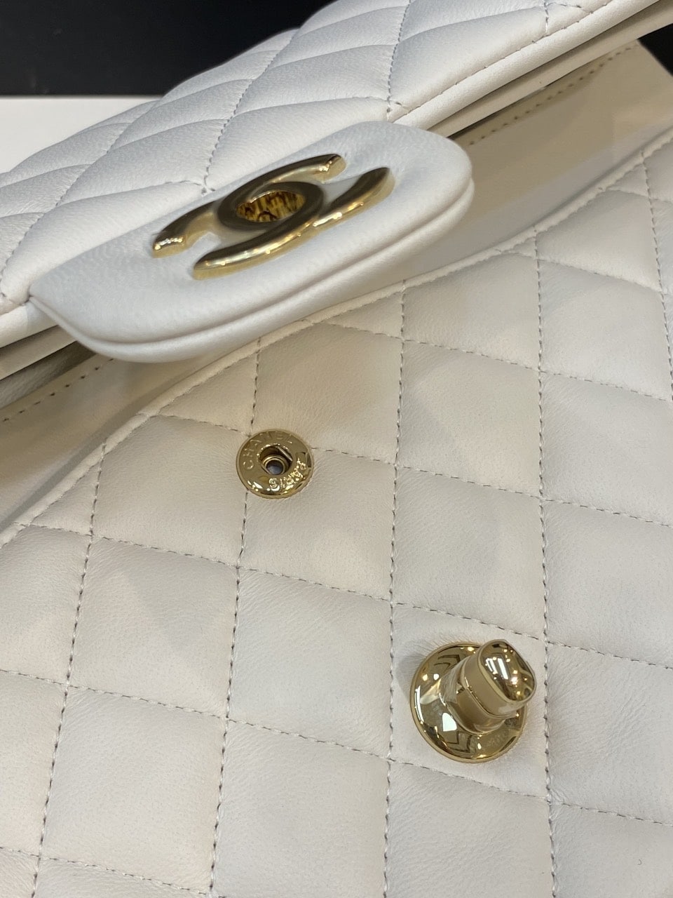 - Logo Chanel bọc vàng sáng tạo điểm nhấn chính giữa túi