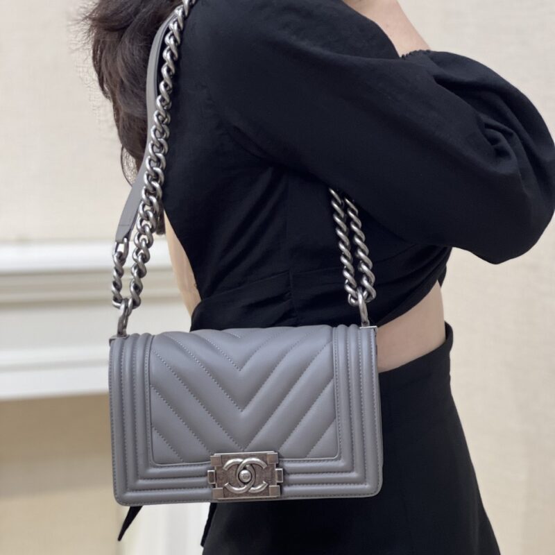 TÚI XÁCH CHANEL SAC BOY DA THẬT KHÂU TAY SIÊU CẤP LIKE AUTH MÀU GHI XÁM