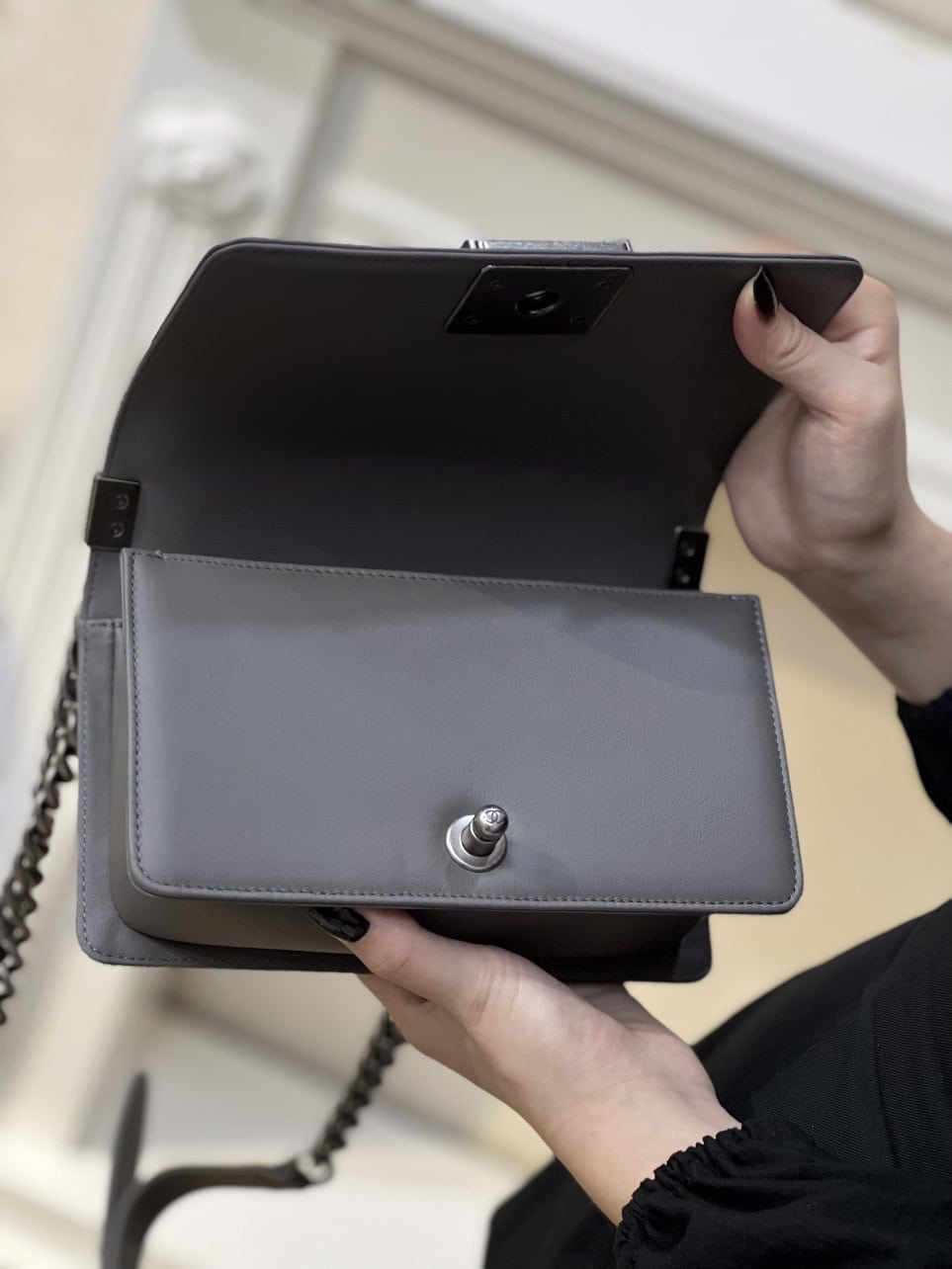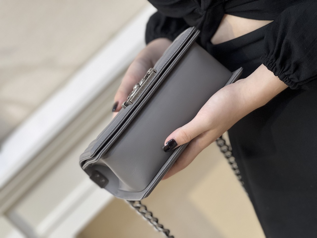 TÚI XÁCH CHANEL SAC BOY DA THẬT KHÂU TAY SIÊU CẤP LIKE AUTH MÀU GHI XÁM