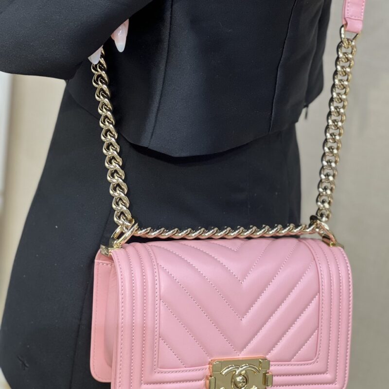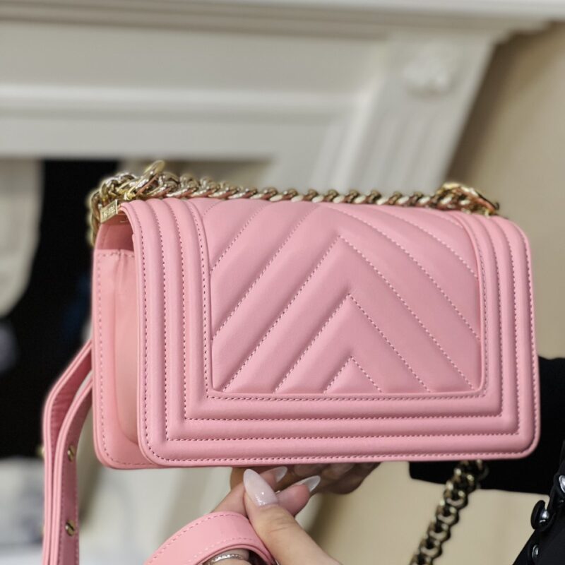 Túi Xách Chanel Leather Boy Large Shoulder là một biểu tượng của Chanel. Và phiên bản túi xách Chanel Boy V với những đường chần bông dứt khoát và cá tính cũng đạt được “Cơn sốt” không hề thua kém. TÚI XÁCH CHANEL SAC BOY DA THẬT KHÂU TAY SIÊU CẤP LIKE AUTH MÀU HỒNG là một thiết kế mang đậm hơi thở Chanel với nguồn cảm hứng mạnh mẽ và quyền lực.
