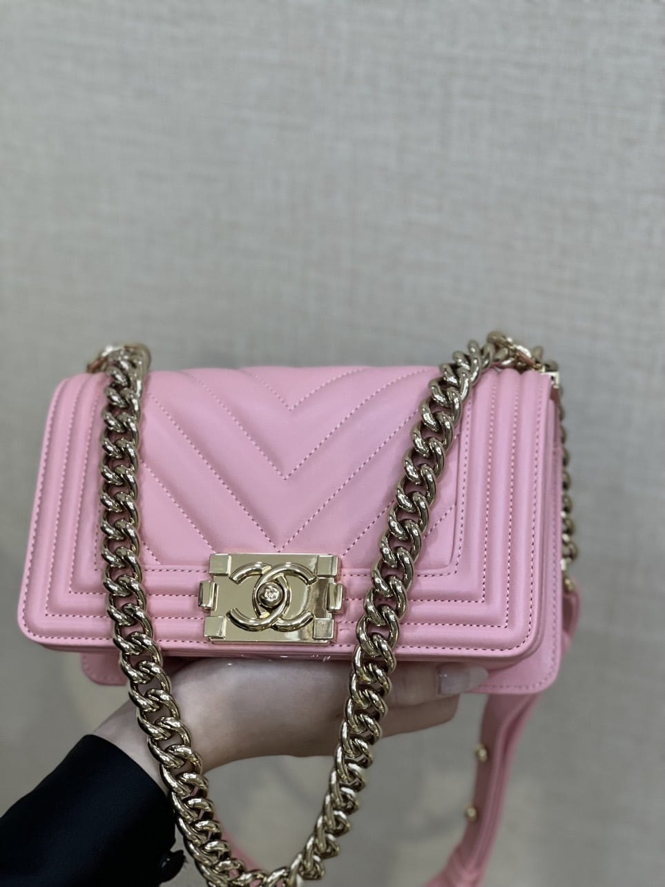 Túi Xách Chanel Leather Boy Large Shoulder là một biểu tượng của Chanel. Và phiên bản túi xách Chanel Boy V với những đường chần bông dứt khoát và cá tính cũng đạt được “Cơn sốt” không hề thua kém. TÚI XÁCH CHANEL SAC BOY DA THẬT KHÂU TAY SIÊU CẤP LIKE AUTH MÀU HỒNG là một thiết kế mang đậm hơi thở Chanel với nguồn cảm hứng mạnh mẽ và quyền lực.