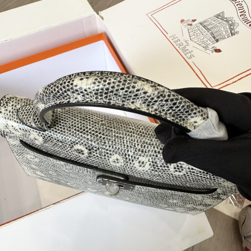 TÚI XÁCH CÔNG SỞ HERMES KELLY NGUYÊN BẢN DA BÒ VÂN DA THẰN LẰN TAG BẠC