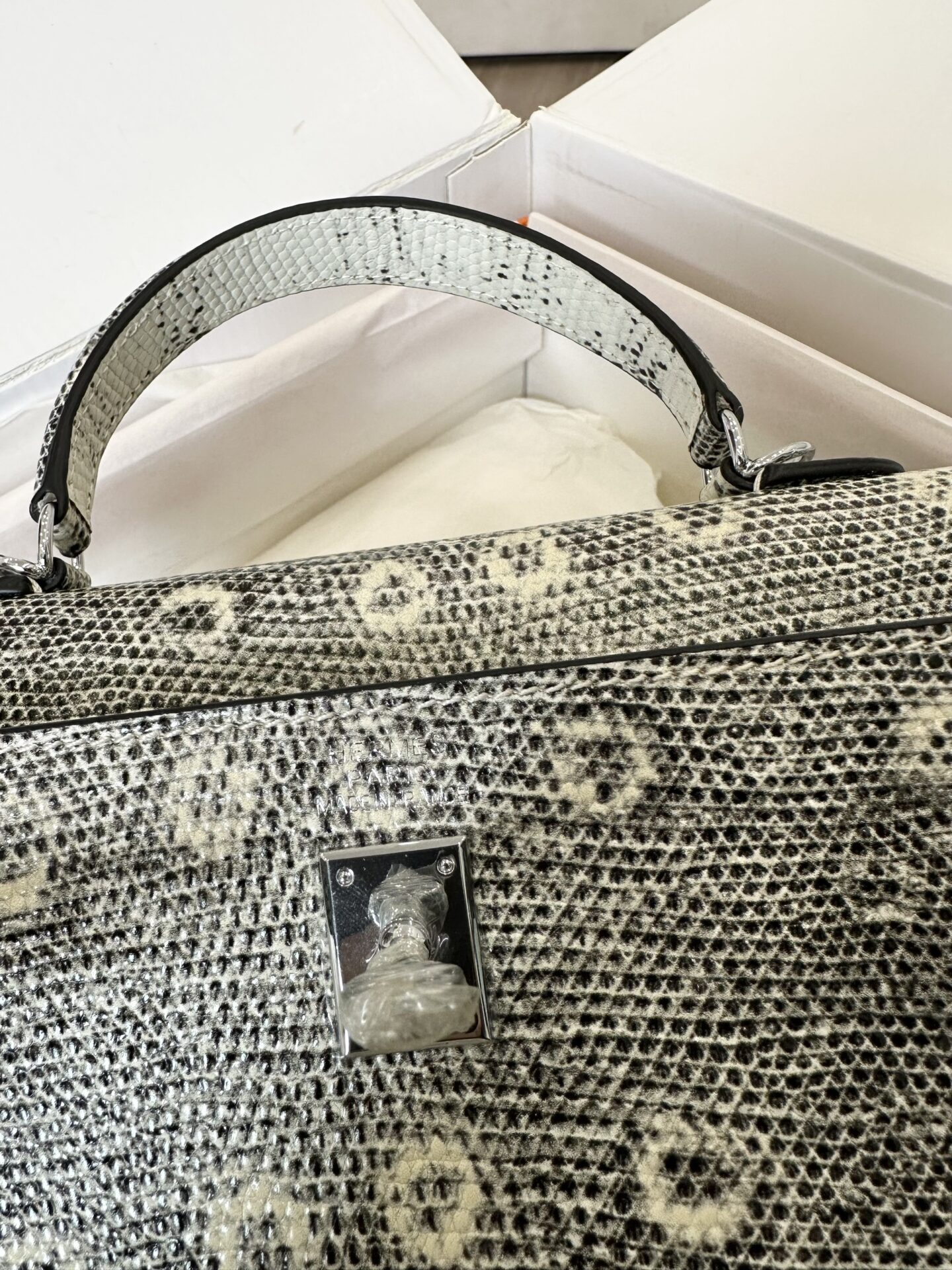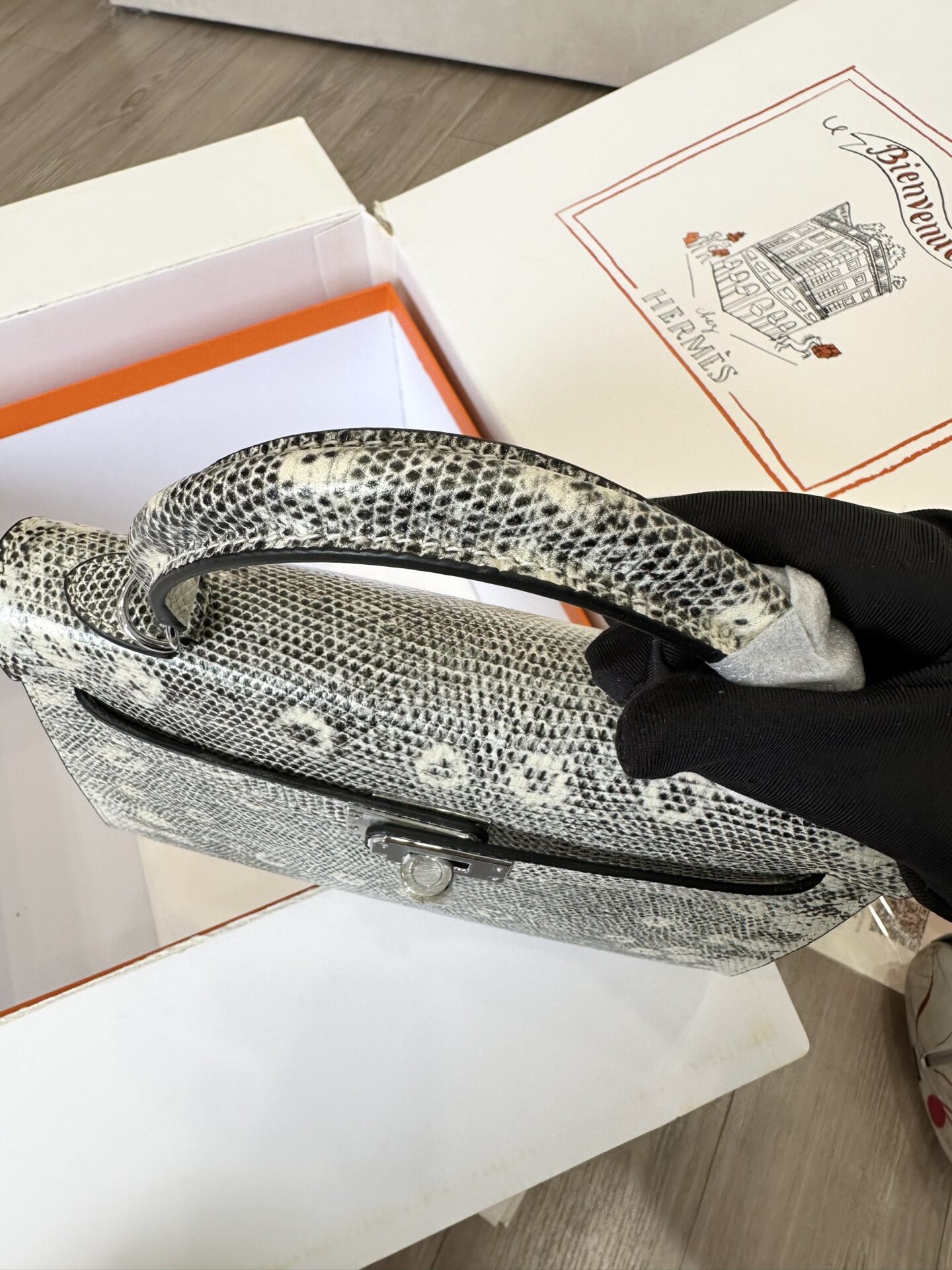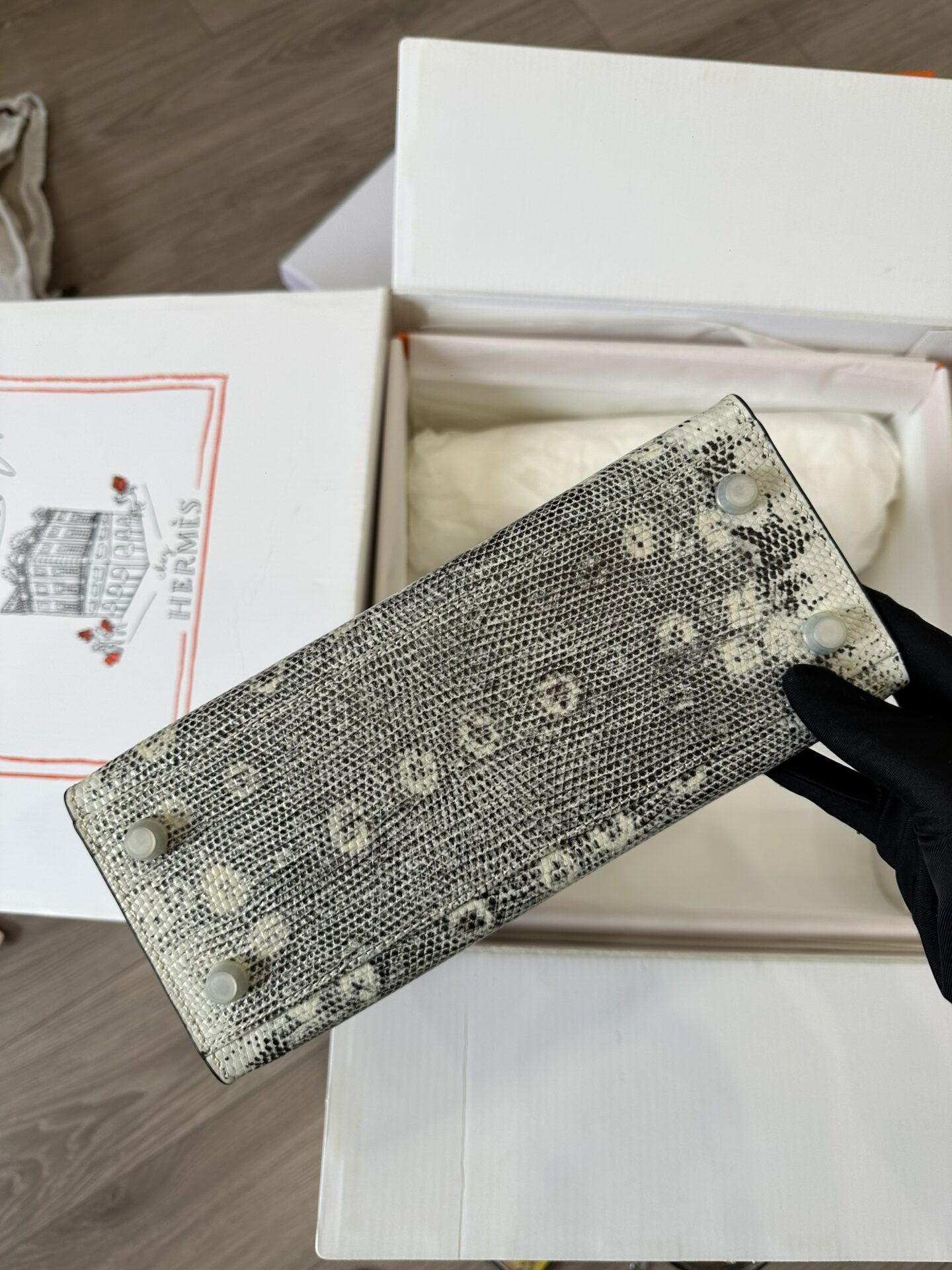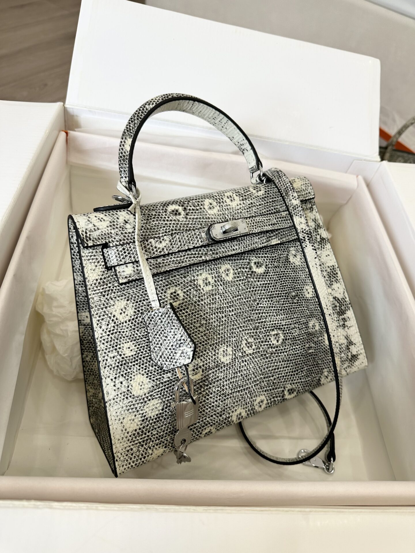 TÚI XÁCH CÔNG SỞ HERMES KELLY NGUYÊN BẢN DA BÒ VÂN DA THẰN LẰN TAG BẠC