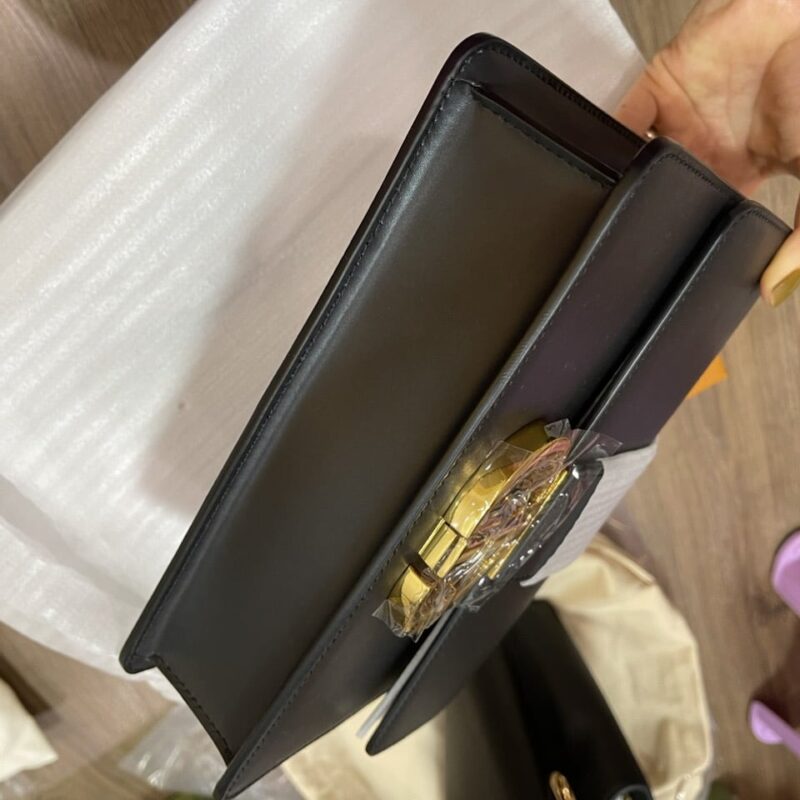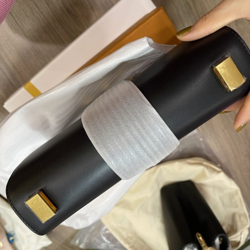 - Nắp có khóa cài ‘CD’ bằng kim loại tráng vàng sang chảnh