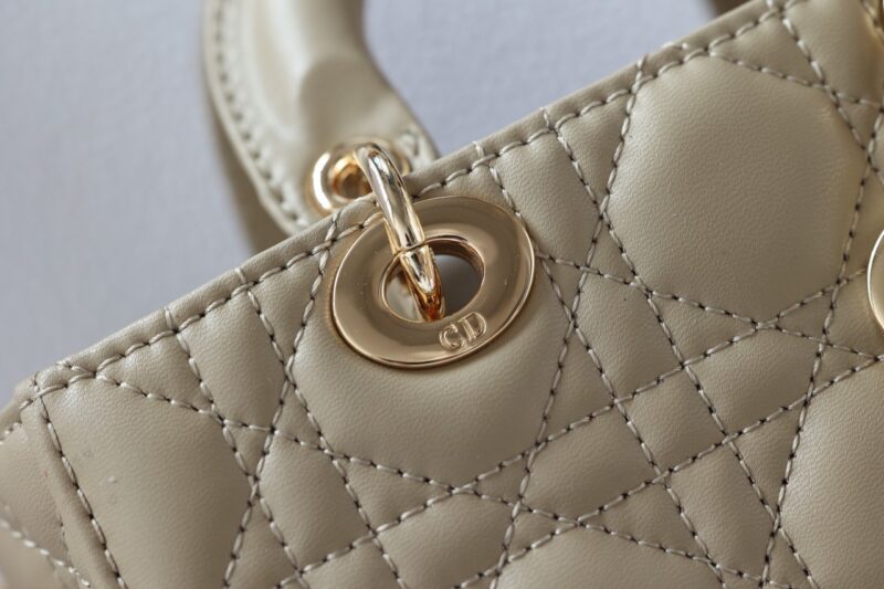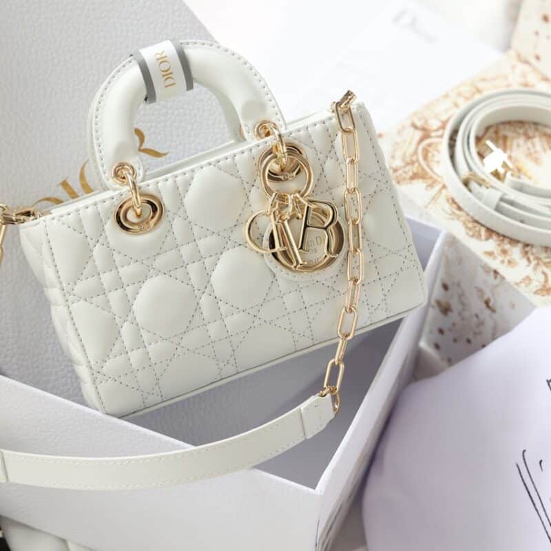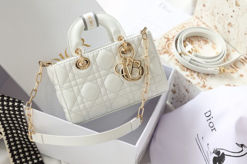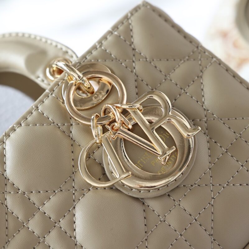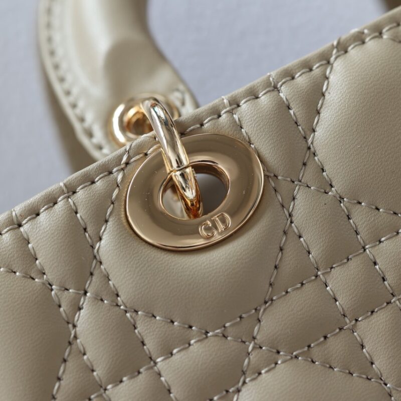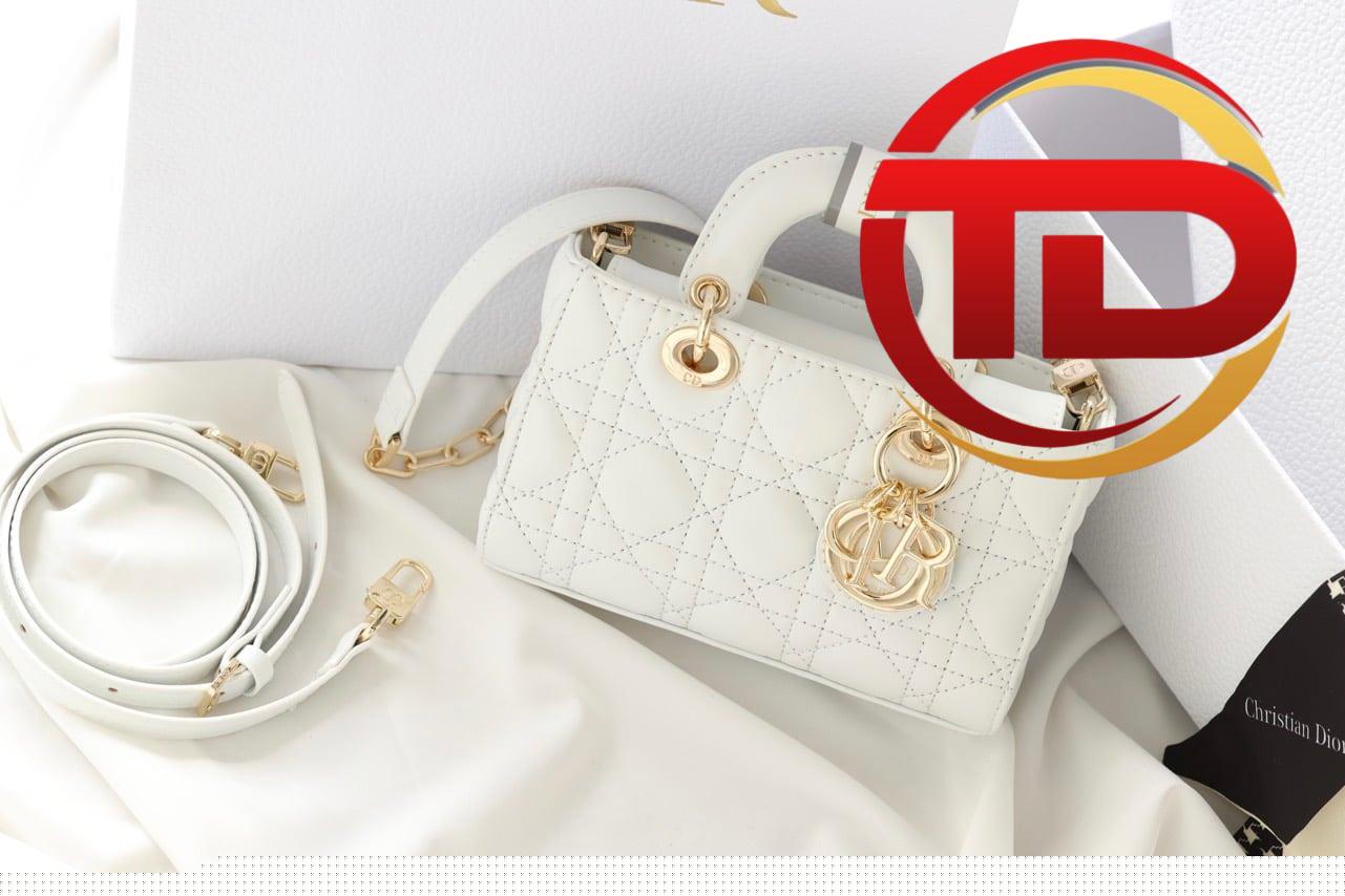 • Quai xách gắn charm chữ D,I,O,R mạ vàng sang trọng