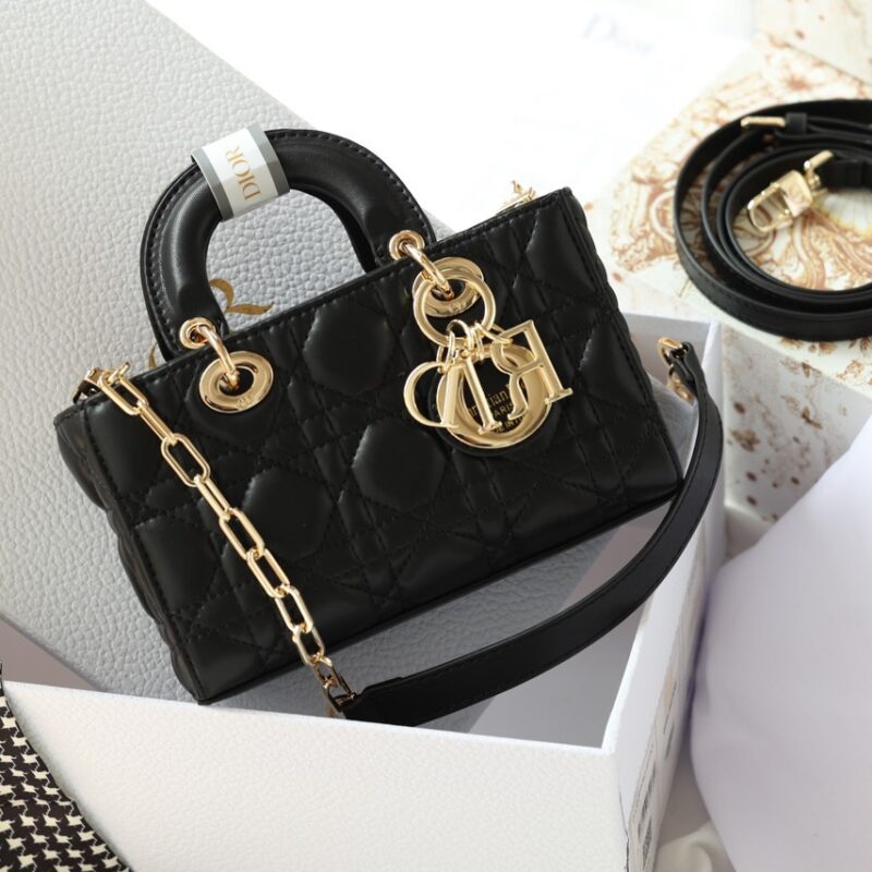 TÚI XÁCH DIOR LADY D-JOY MINI SIZE SUPER BAG DA LÌ TAG VÀNG