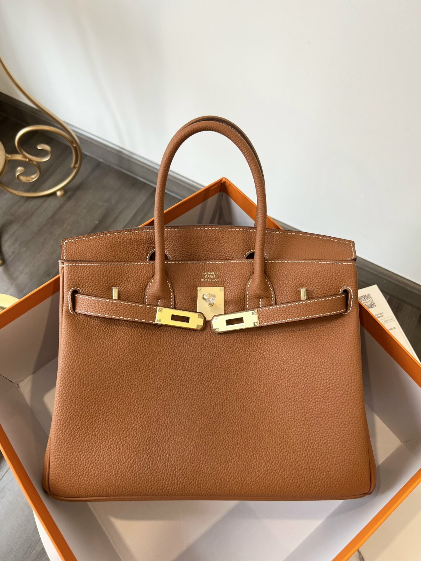 TÚI XÁCH HERMES BIRKIN TOGO NGUYÊN BẢN TAG VÀNG SIZE 30 MÀU NÂU