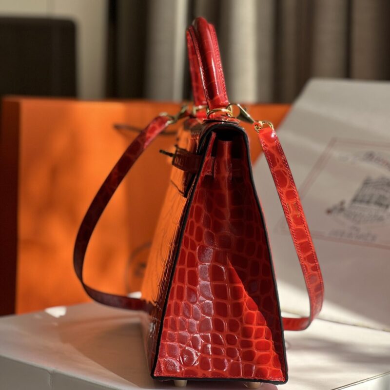 TÚI XÁCH HM HERMES KELLY 28 CROCODILE SIÊU CẤP được sử dụng chất liệu da cá sấu cao cấp được xử lý tỉ mỉ dưới bàn tay điêu luyện của thợ gia công chuyên nghiệp toát lên nét sang trọng, cuốn hút ngay từ cái nhìn đầu tiên.Túi được cấu tạo hình dạng rất rõ ràng và vô cùng đứng form với kích thước 28cm phù hợp mang theo đồ dùng cá nhân cơ bản.