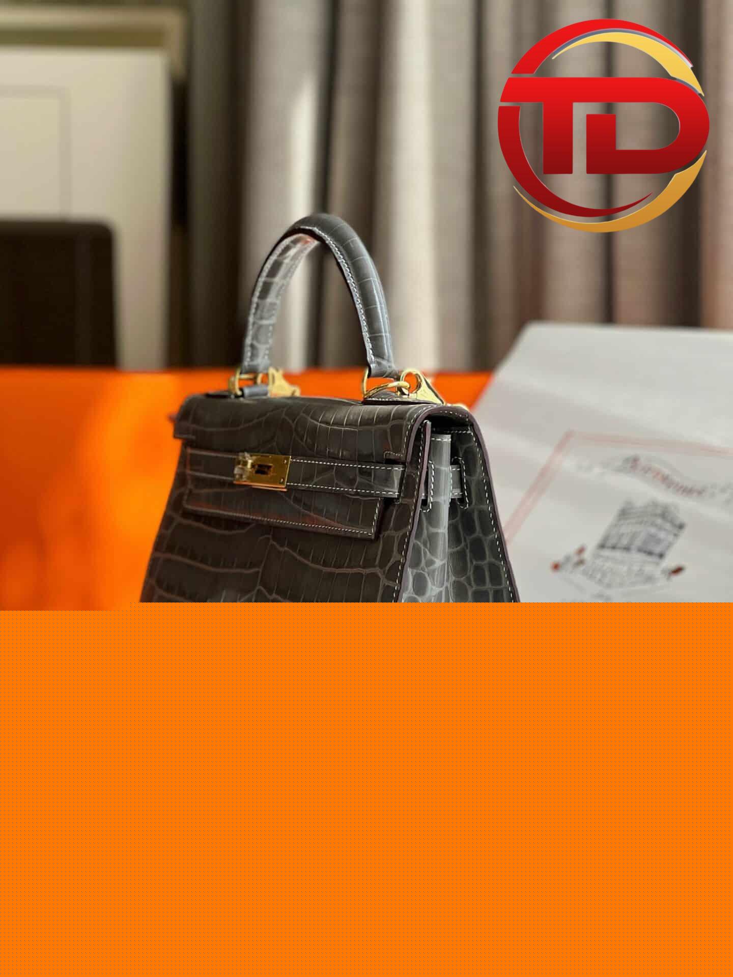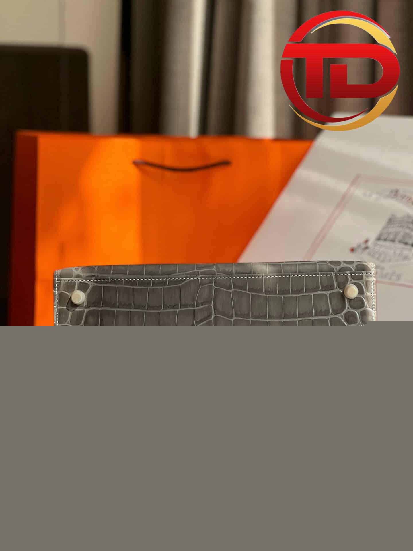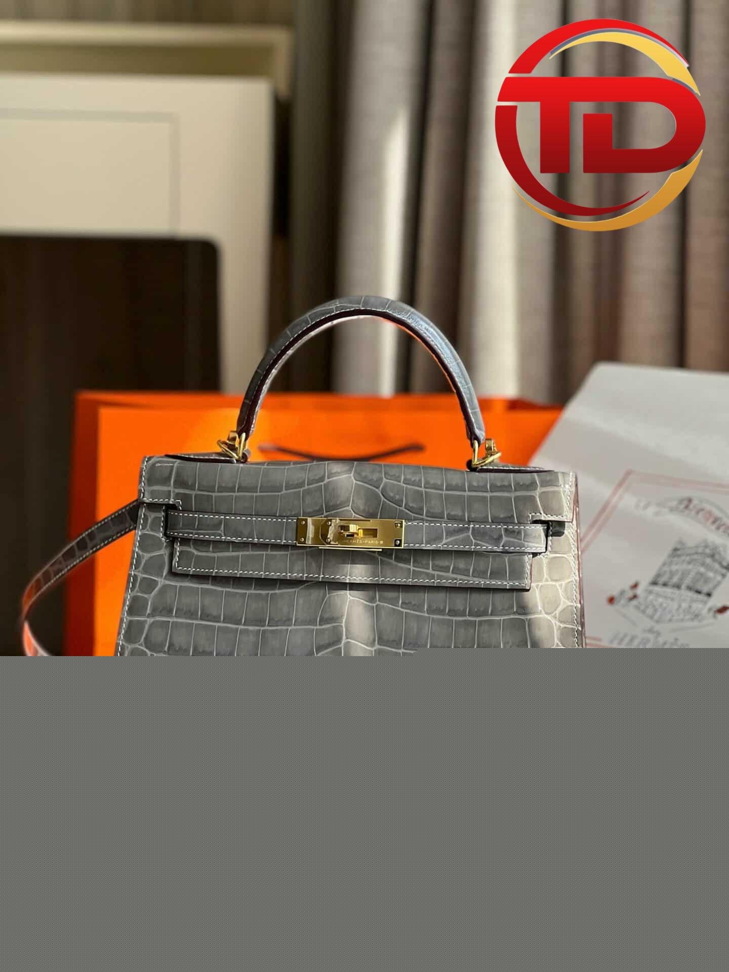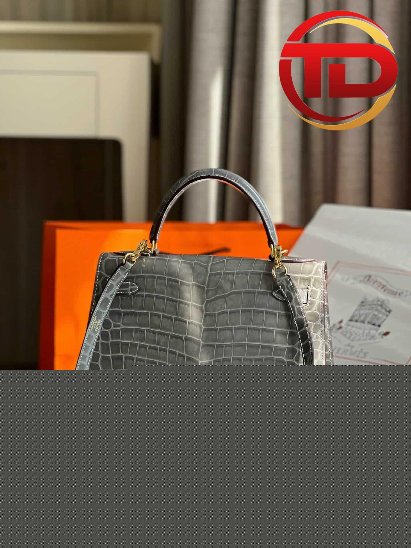 TÚI XÁCH HM HERMES KELLY 28 CROCODILE SIÊU CẤP KHÂU TAY 100% MÀU GHI