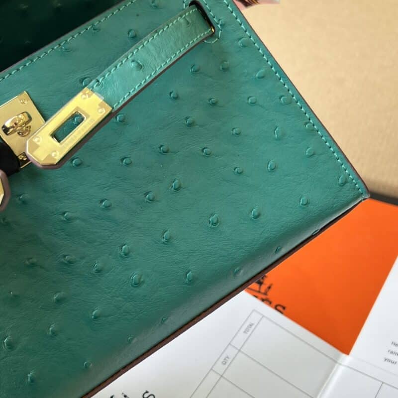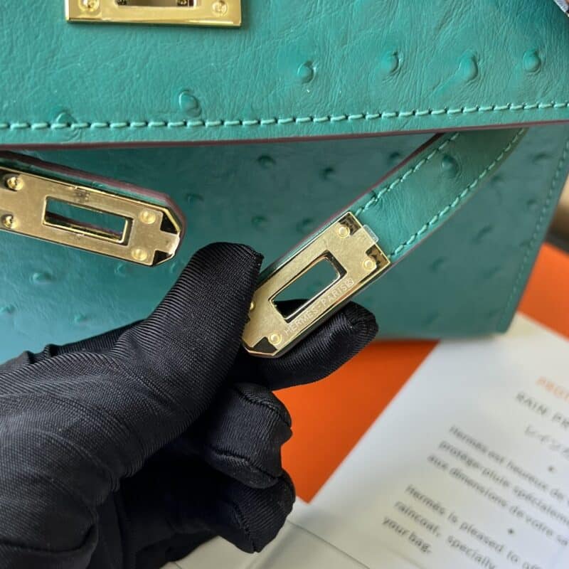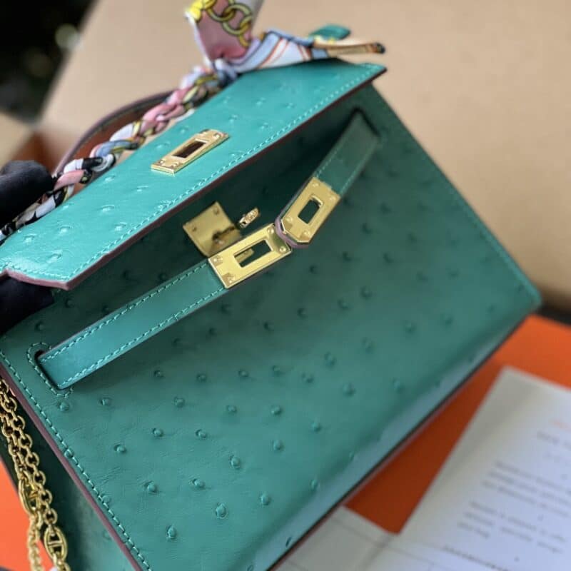 TÚI XÁCH HM KELLY POCHETTE VÂN DA ĐÀ ĐIỂU CAO CẤP TAG VÀNG MÀU XANH LÁ