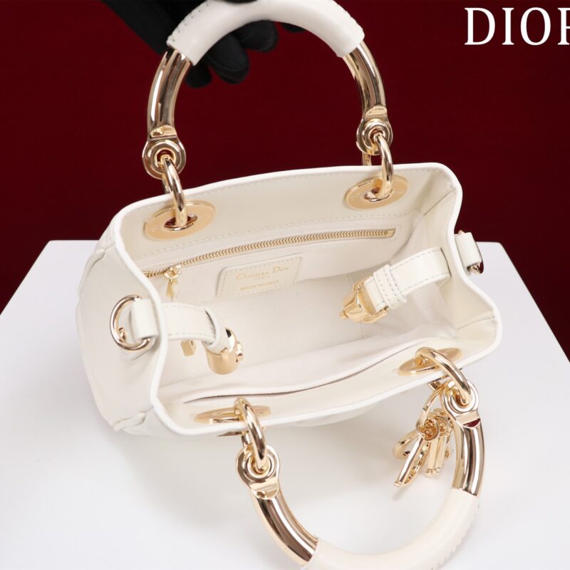 Lady 95.22 mang nhiều dấu ấn cổ điển, với charm DIOR. Chi tiết trang trí tinh tế này vừa tri ân thiết kế nguyên bản, vừa làm nên vẻ đẹp khác biệt cho chiếc túi.