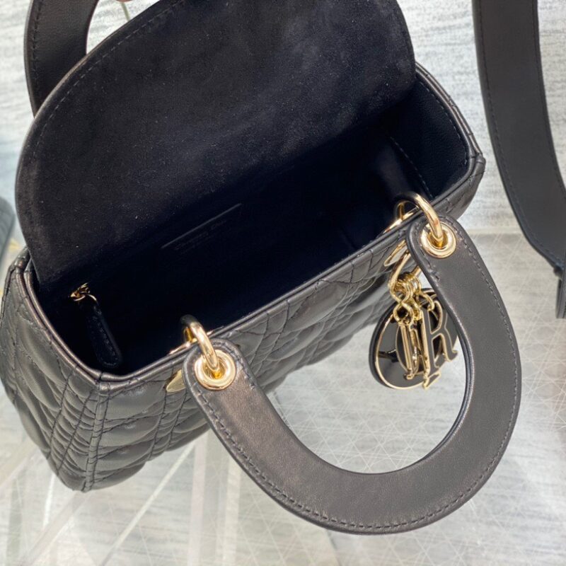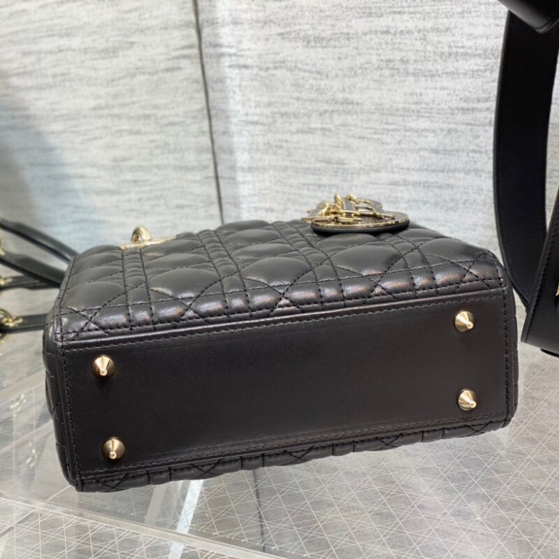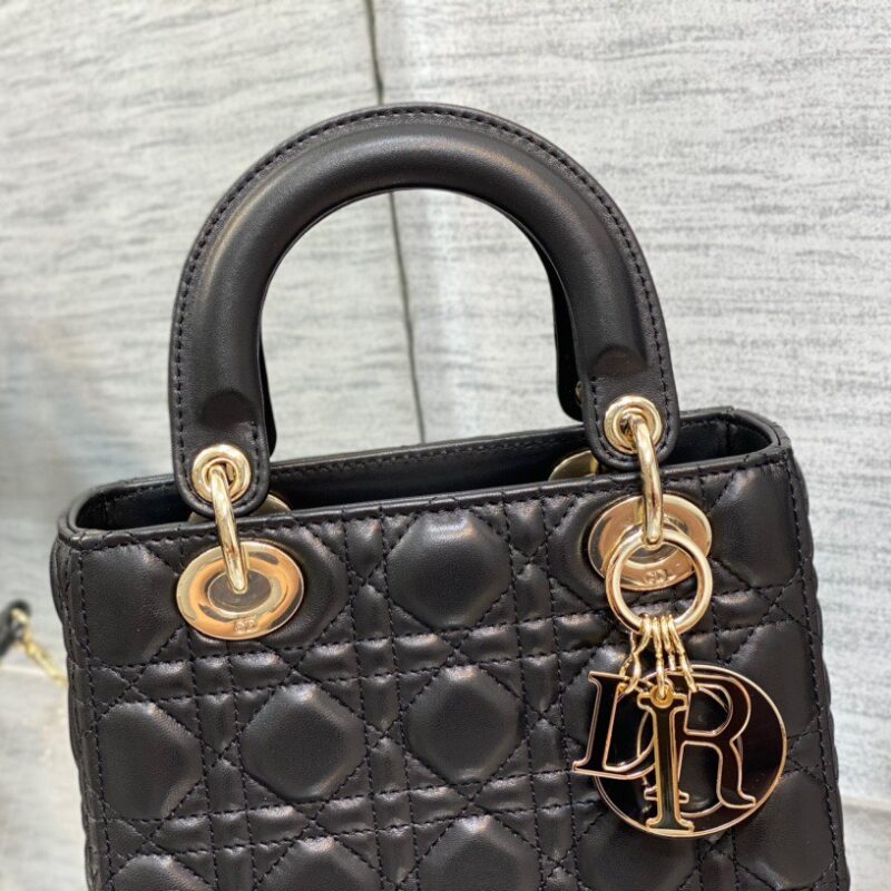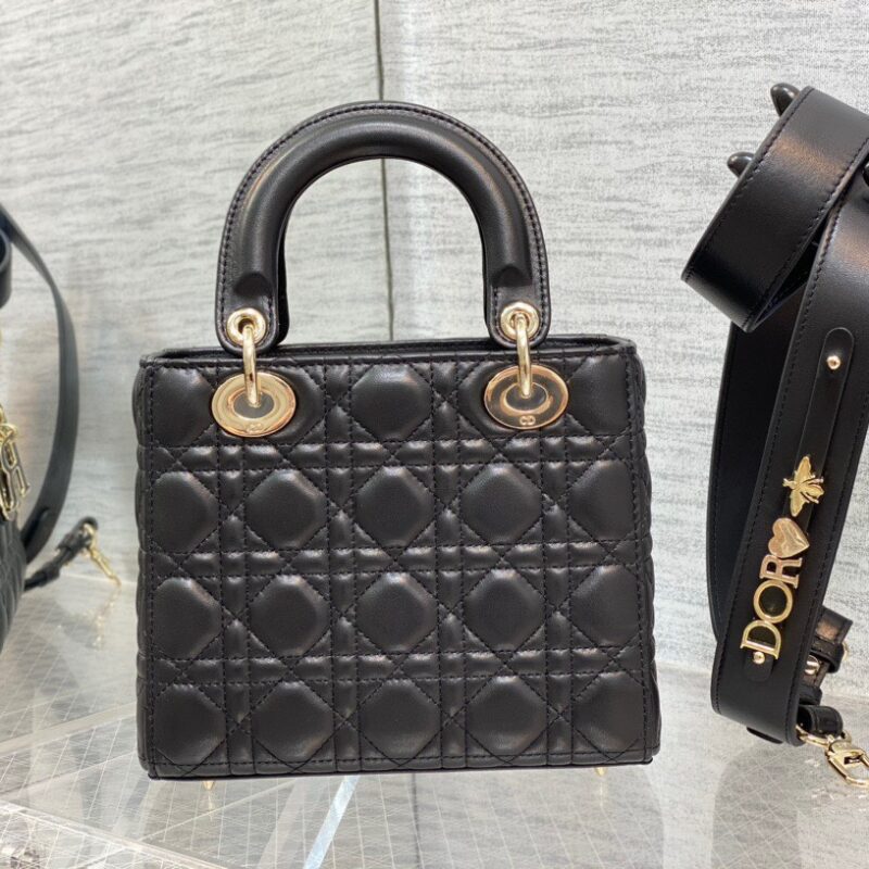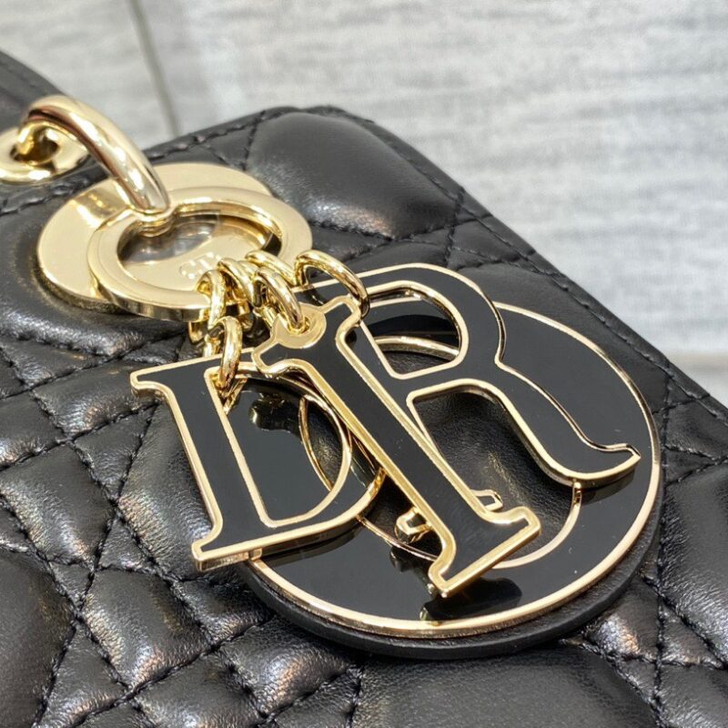 Túi được chế tác từ chất da thật mềm mại và mịn màng, sang trọng. Những đường may tinh tế tạo thành hình thoi nổi bật trên nền chất liệu da mềm mại khiến mẫu túi được yêu thích hơn hẳn trong suốt nhiều năm nay. Túi Lady Dior được trang trí bằng các chi tiết kim loại cao cấp sáng bóng. Các chữ “D, I, O, R” bằng kim loại treo bên góc túi được lấy cảm hứng từ sự yêu thích của Christian Dior với những tấm bùa hộ mệnh.