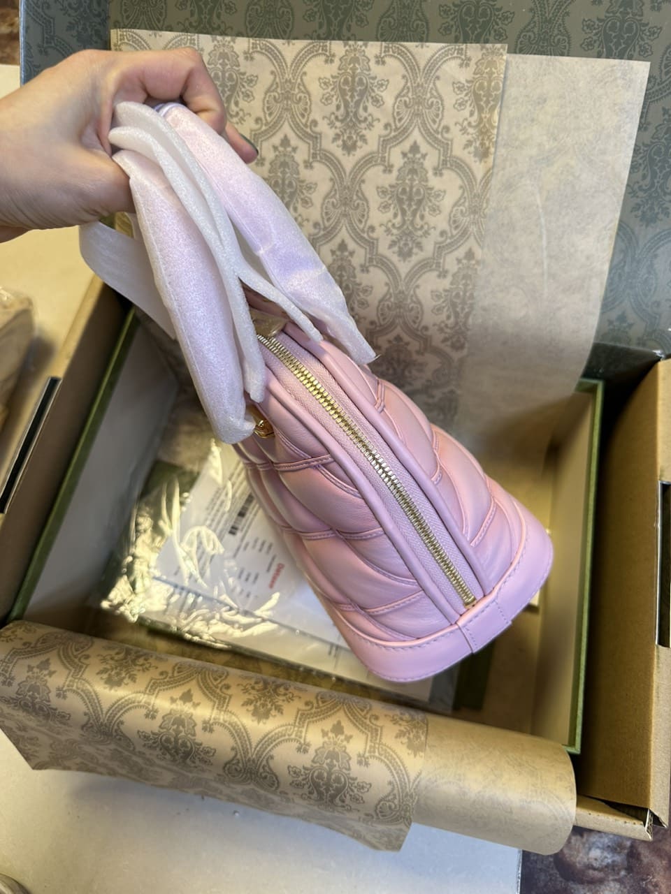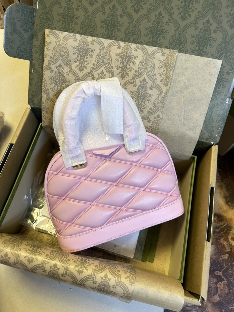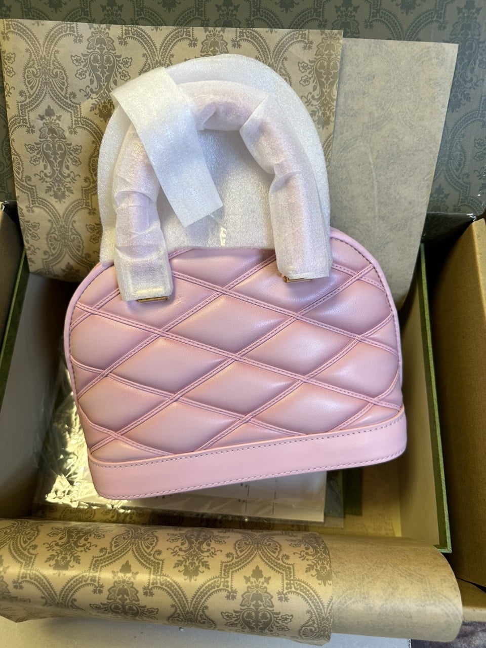 - Chất liệu da cừu chần bông với hiệu ứng bóng mờ