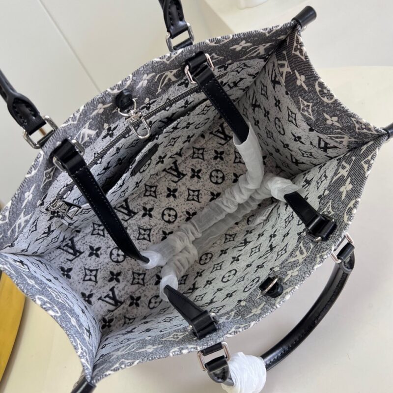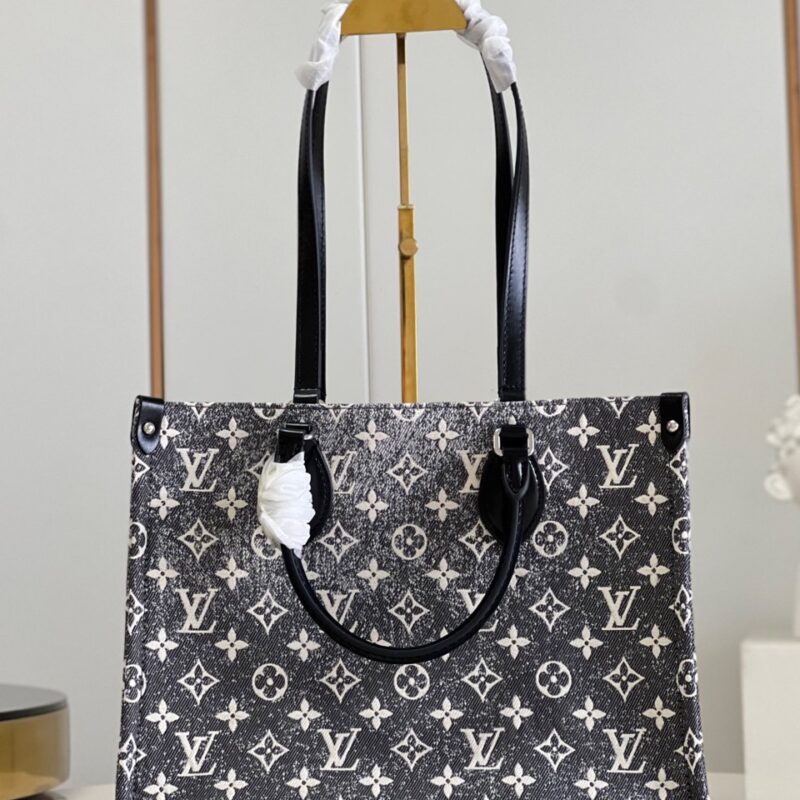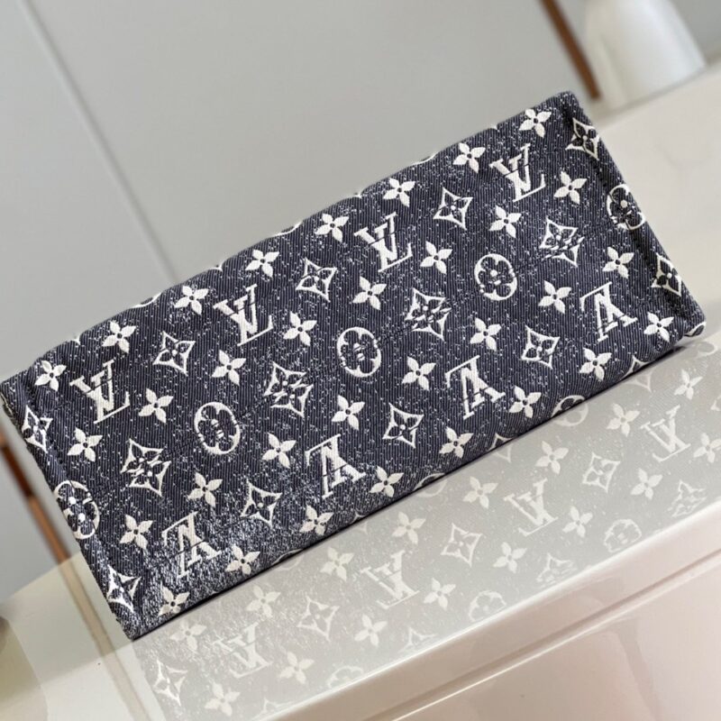 TÚI XÁCH LV LOUIS VUITTON ONTHEGO MM TOTE BAG DENIM SIÊU CẤP được biến tấu mới mẻ và thời trang trong mùa này, được khoác lên mình chiếc áo khoác denim Monogram. Loại vải dệt thủ công tinh xảo, nổi bật bởi đường viền da màu ghi và đường chỉ khâu màu trắng tương phản.