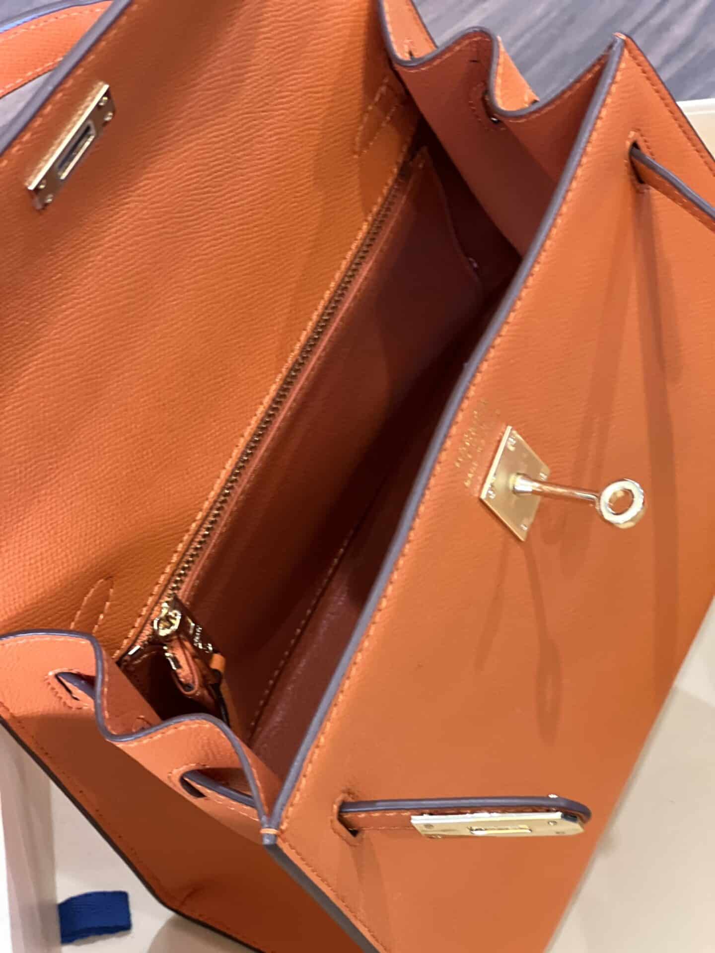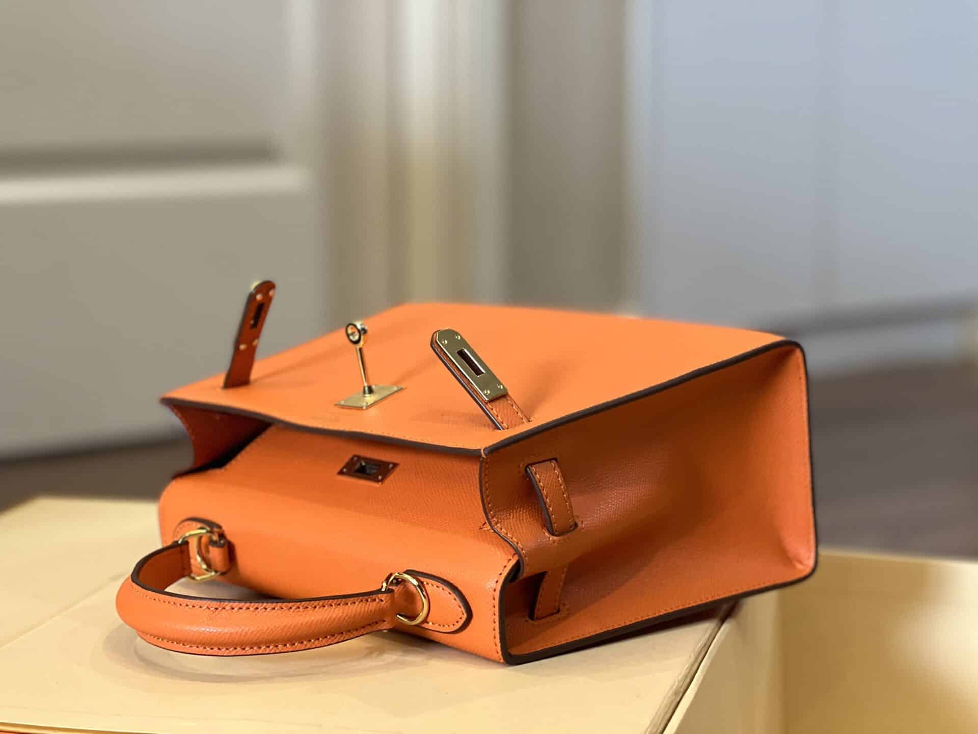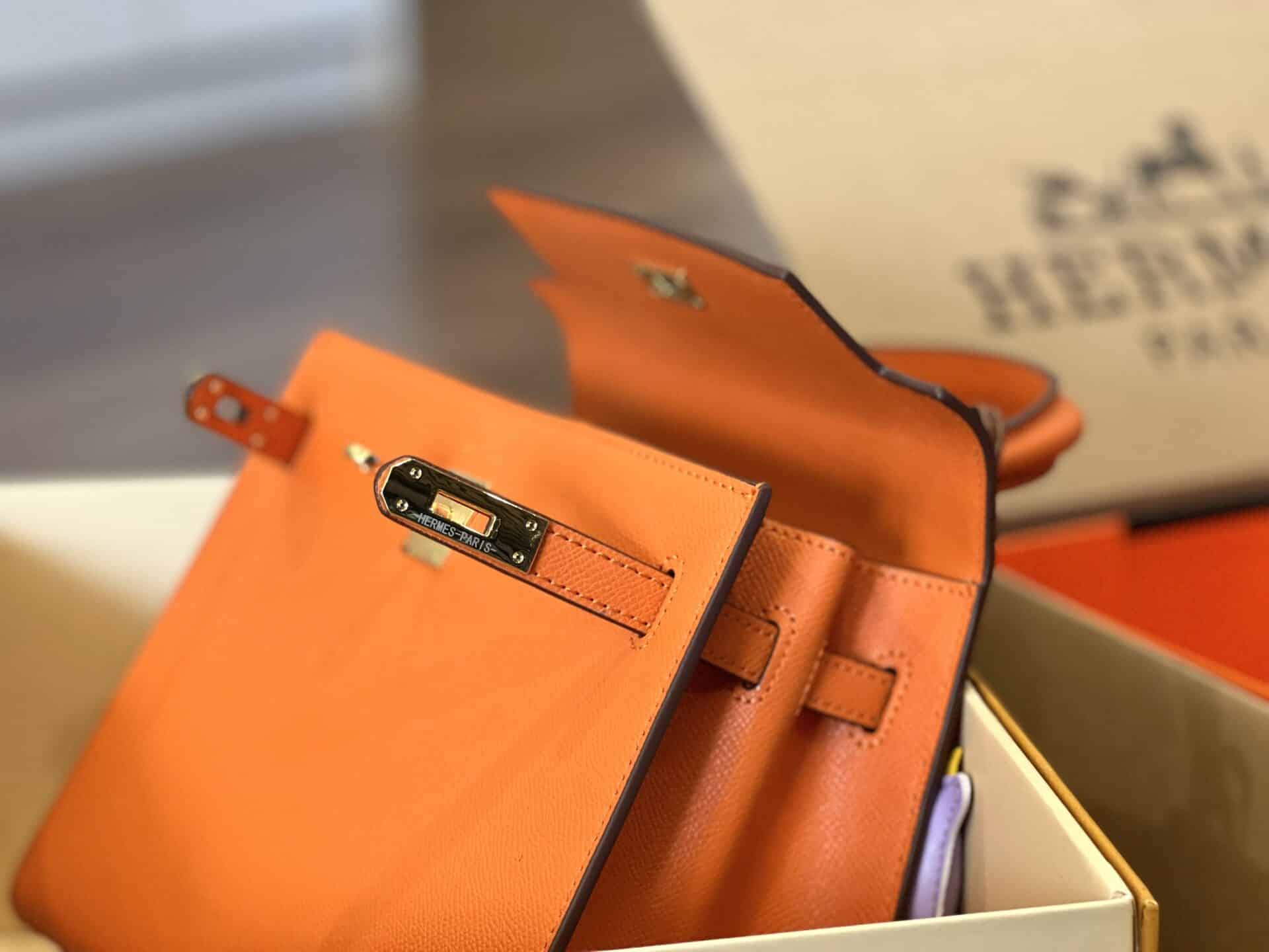 TÚI XÁCH NỮ HM KELLY ETOUPE EPSOM BẢN SIÊU CẤP VIP KHÓA VÀNG TẶNG KÈM KHĂN MÀU CAM