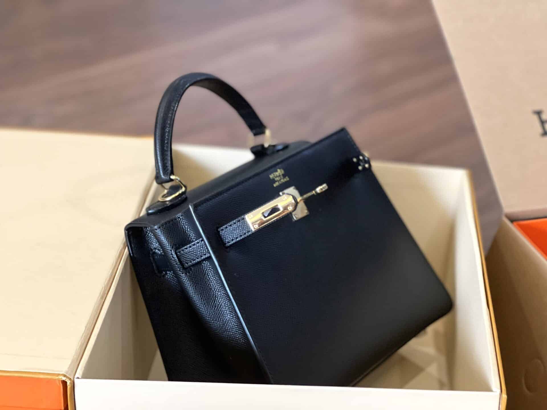 TÚI XÁCH NỮ HM KELLY ETOUPE EPSOM BẢN SIÊU CẤP VIP KHÓA VÀNG TẶNG KÈM KHĂN MÀU ĐEN