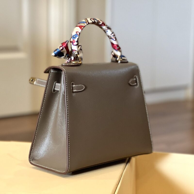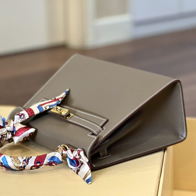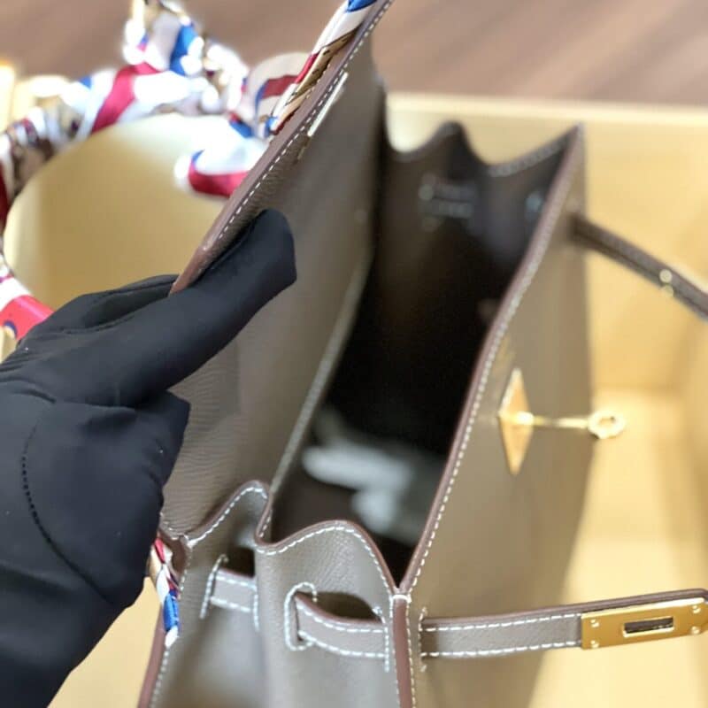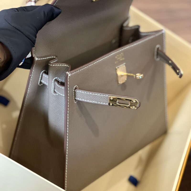 TÚI XÁCH NỮ HM KELLY ETOUPE EPSOM BẢN SIÊU CẤP VIP KHÓA VÀNG TẶNG KÈM KHĂN MÀU NÂU ĐẤT