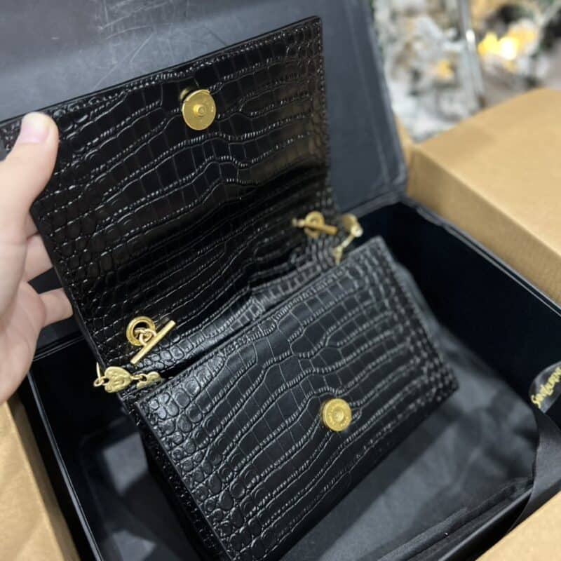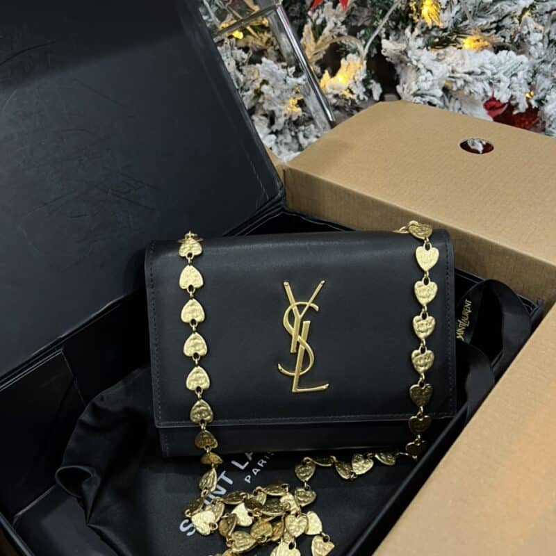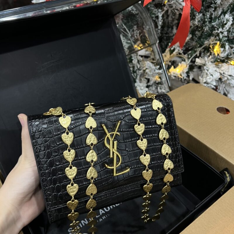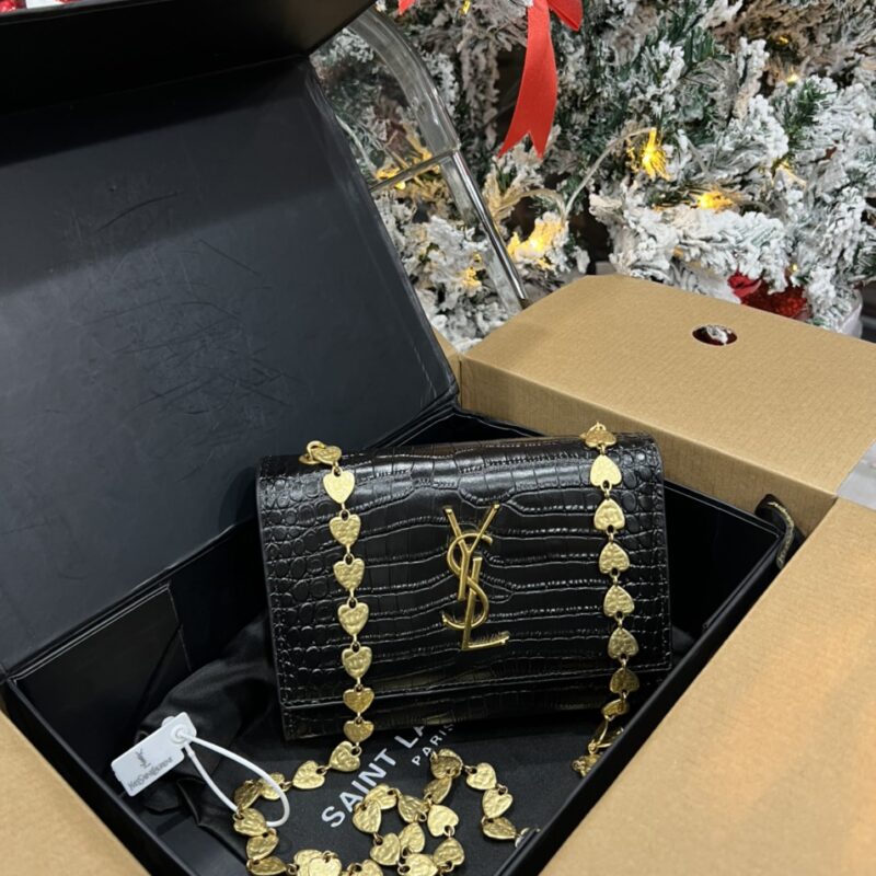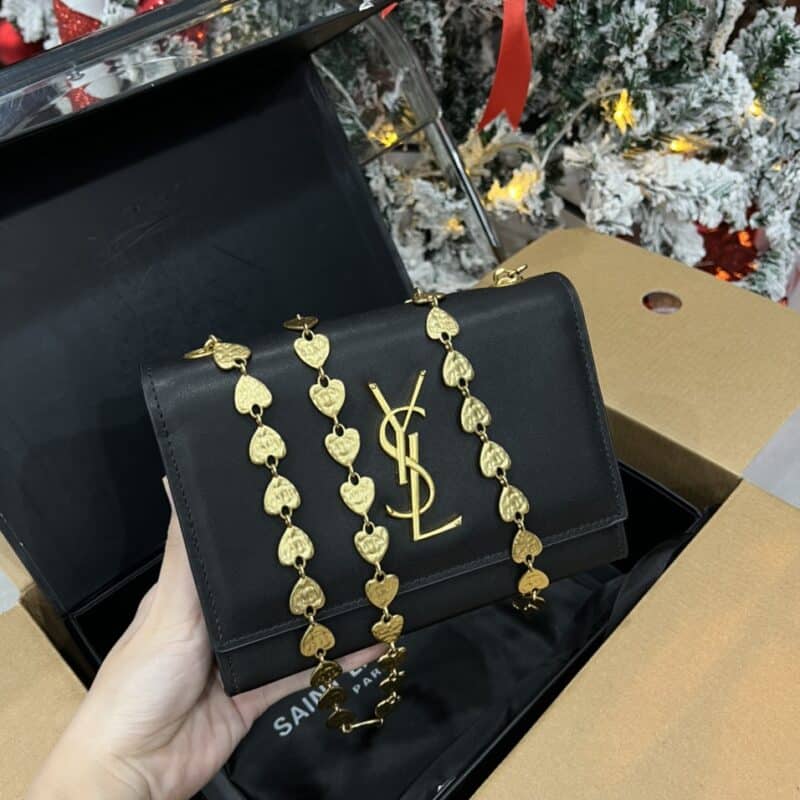 TÚI YSL SAINT LAURENT DA ĐEN KHÓA XÍCH TRÁI TYM ĐEO CHÉO CỰC ĐẸP